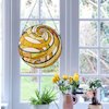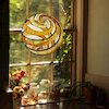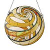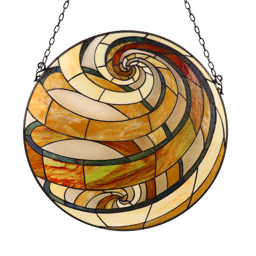 Terra, a gorgeous geometric style tiffany-glass window panel, is an excellent addition for any home. Terra, named for the orange swirls that resemble planet earth's deserts, will bring a sense of peace and calm whenever the sun shines through! The hand crafted Tiffany panel is made up of 119 pieces of hand cut, stained art glass, expertly pieced and soldered together, to create each panel. Each of CHLOE's Tiffany-style stained glass panels are formed using the very same technique developed by Louis Comfort Tiffany in the early 1900's, using hand cut stained art glass, each wrapped in fine copper foil and soldered together at extremely high temperatures to form each unique panels. Exact size to the nearest inch may vary, and exact color of each glass piece may vary due to each piece being hand crafted. First image is with the light shining through, second image is with no light. Dry listed and recommended for an indoor setting.