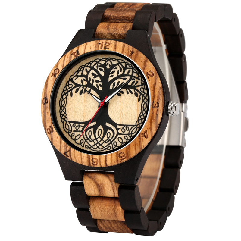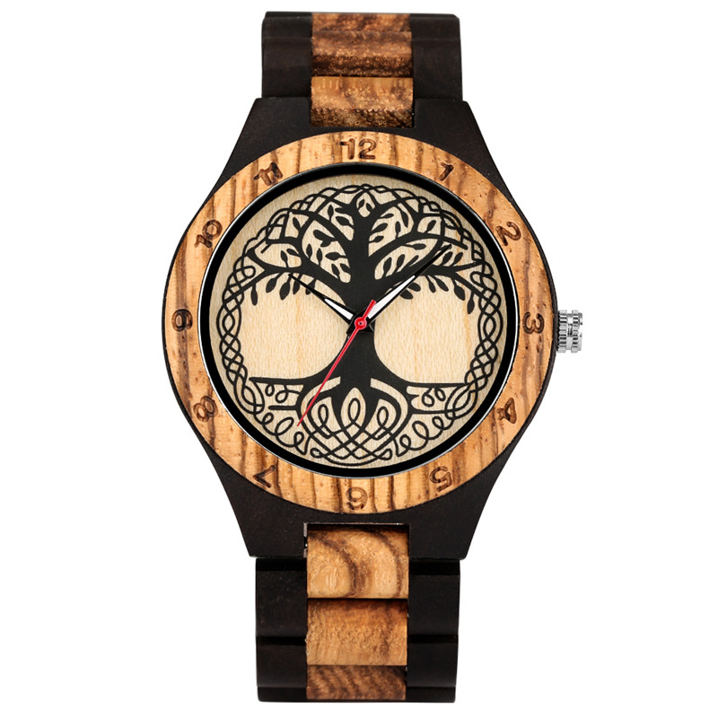 The watch is made from natural Wood and is wrapped by hand, so it may have some natural harsh lines and a few blemishes.
