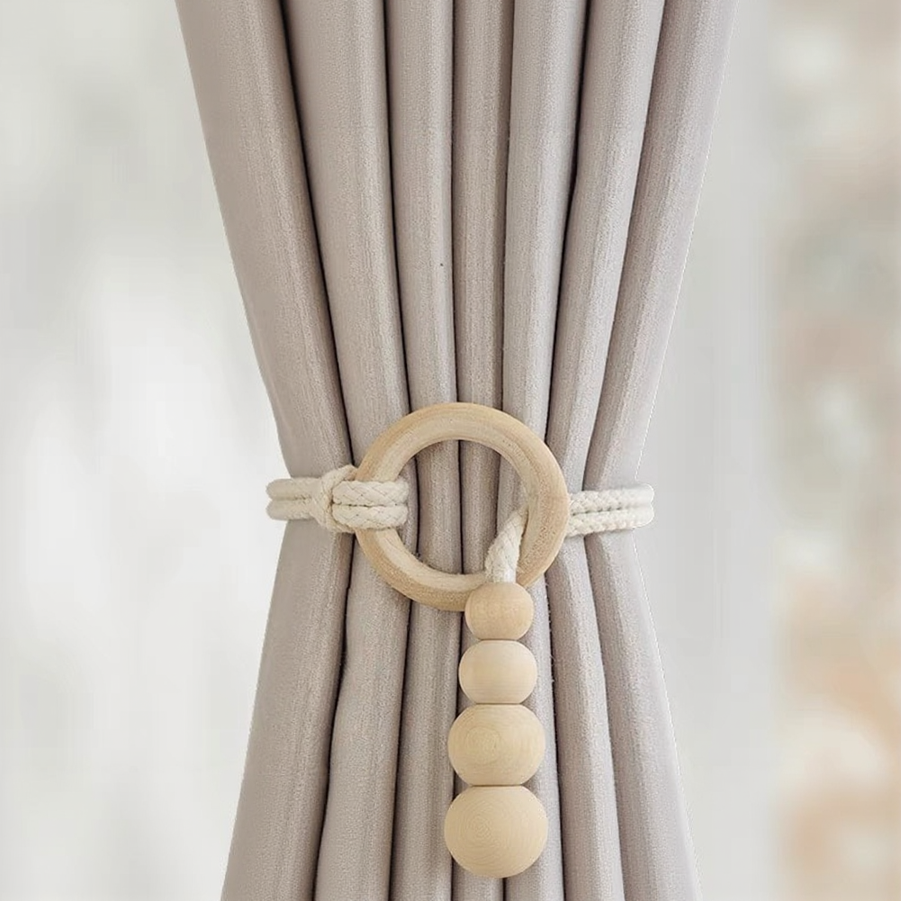 Pour chambre à coucher rideau boho attache anneau en bois retenue design polyva