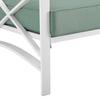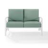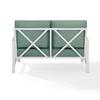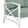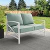 Enjoy your morning coffee in cushioned comfort with the Kaplan Outdoor Loveseat. Made from sturdy powder-coated steel, this two-seat outdoor sofa offers deep cushioned seats covered with solution-dyed polyester. Featuring a sleek frame with an eye-catching x-back design, the Kaplan Loveseat will have you lounging in classic style.