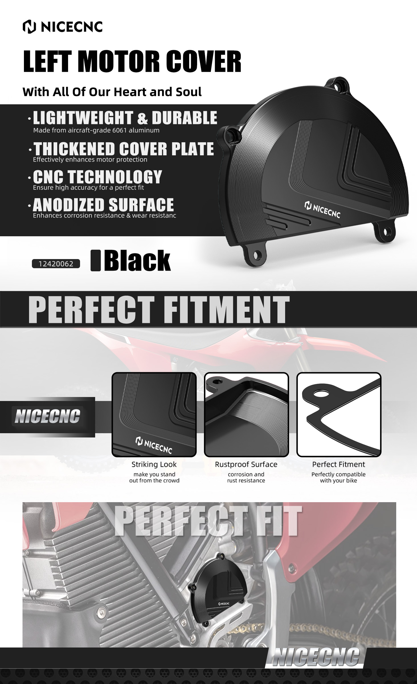 Established in 2010, NiceCNC is the leading brand around the world. We focus on a huge variety of high-quality performance racing motorcycle/car/ATV/UTV parts for our customers. For a decade, our products have reached more than 100 countries, serving nearly 1,000,000 customers. Our overseas warehouses are spread across the globe to make fast delivery possible.