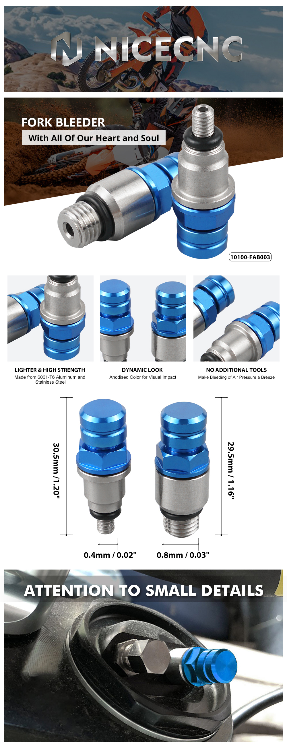 -- The Fork Bleeders are CNC-machined from Billet Aluminum.