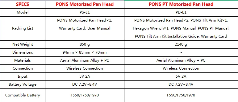 PONS Motorized Pan Head × 1Warranty Card × 1PONS Manual × 1