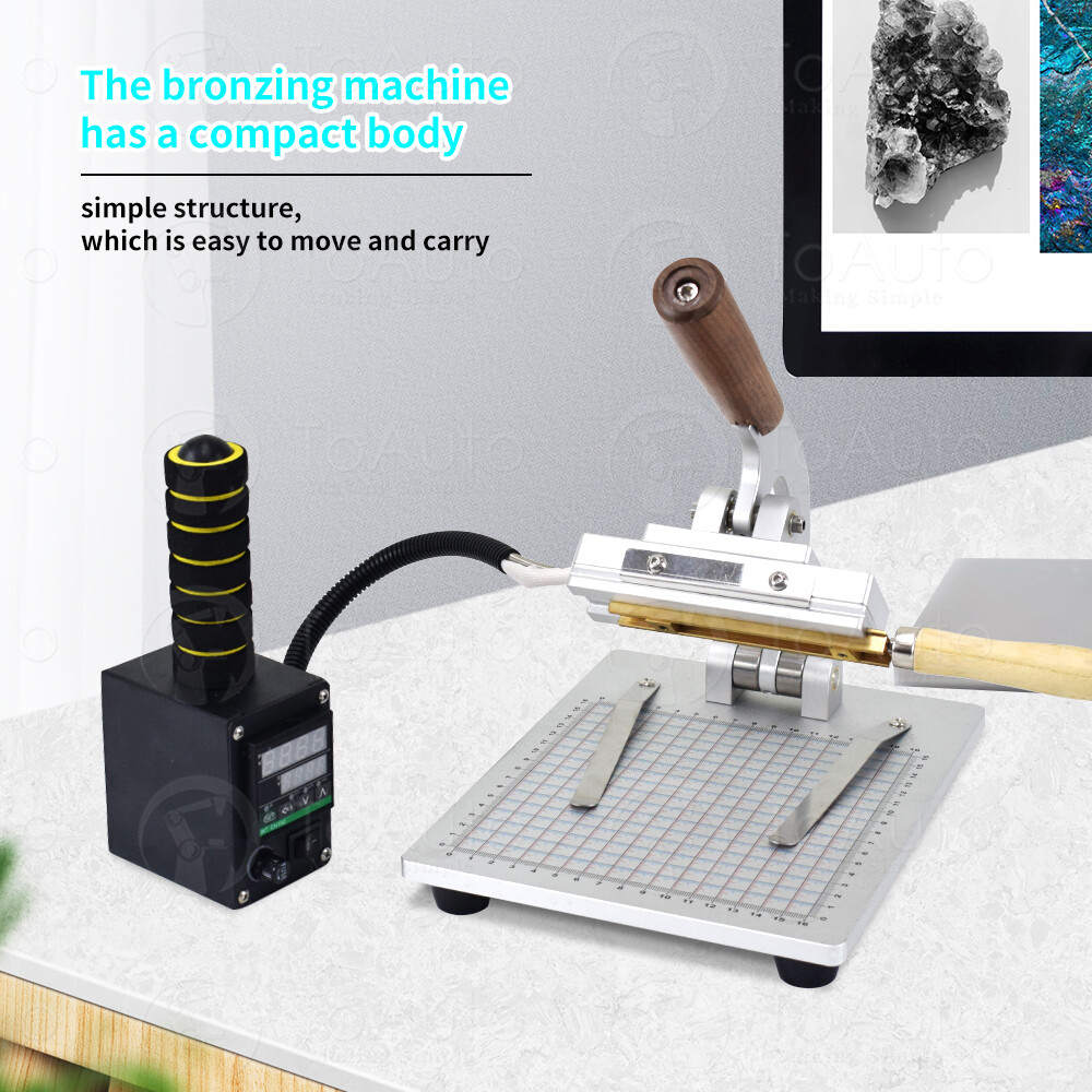 • A versatile and compact desktop hot stamping machine for applying foil or heat transfers to leather, paper, plastic, wood, and various other materials.