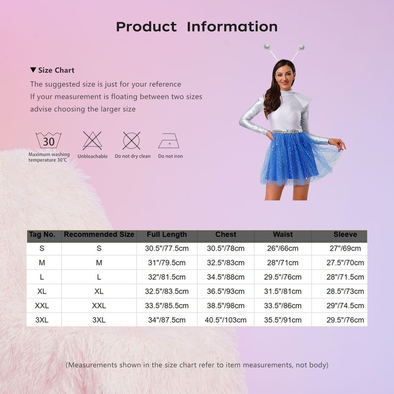 The metallic shiny sequined design is trendy and eye-catching, making you stand out in the space-themed Halloween party and following the latest fashion trends.