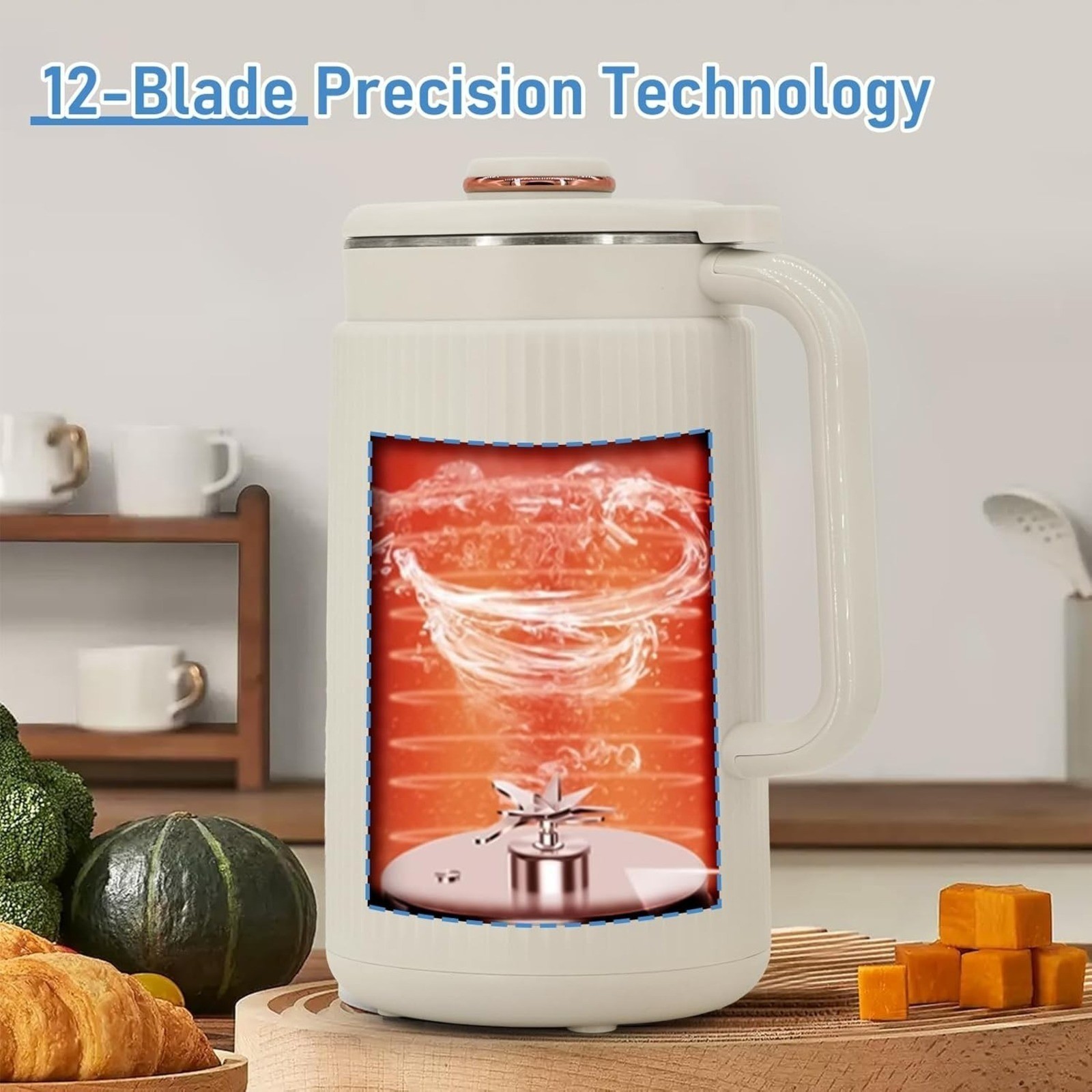 Silky-Smooth & Creamy Milk-- No Soaking Needed: The high-power motor and 12-blade stainless steel blades crush ingredients effortlessly. 4 built-in flow-disrupting columns break down clumps for grit-free milk every time.