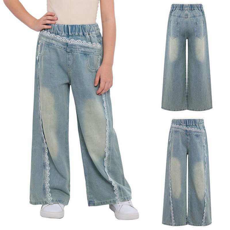Mädchen Hose Weites Bein Schlaghosen Mode Jeans Heim Kostüm Im Freien Outfit
