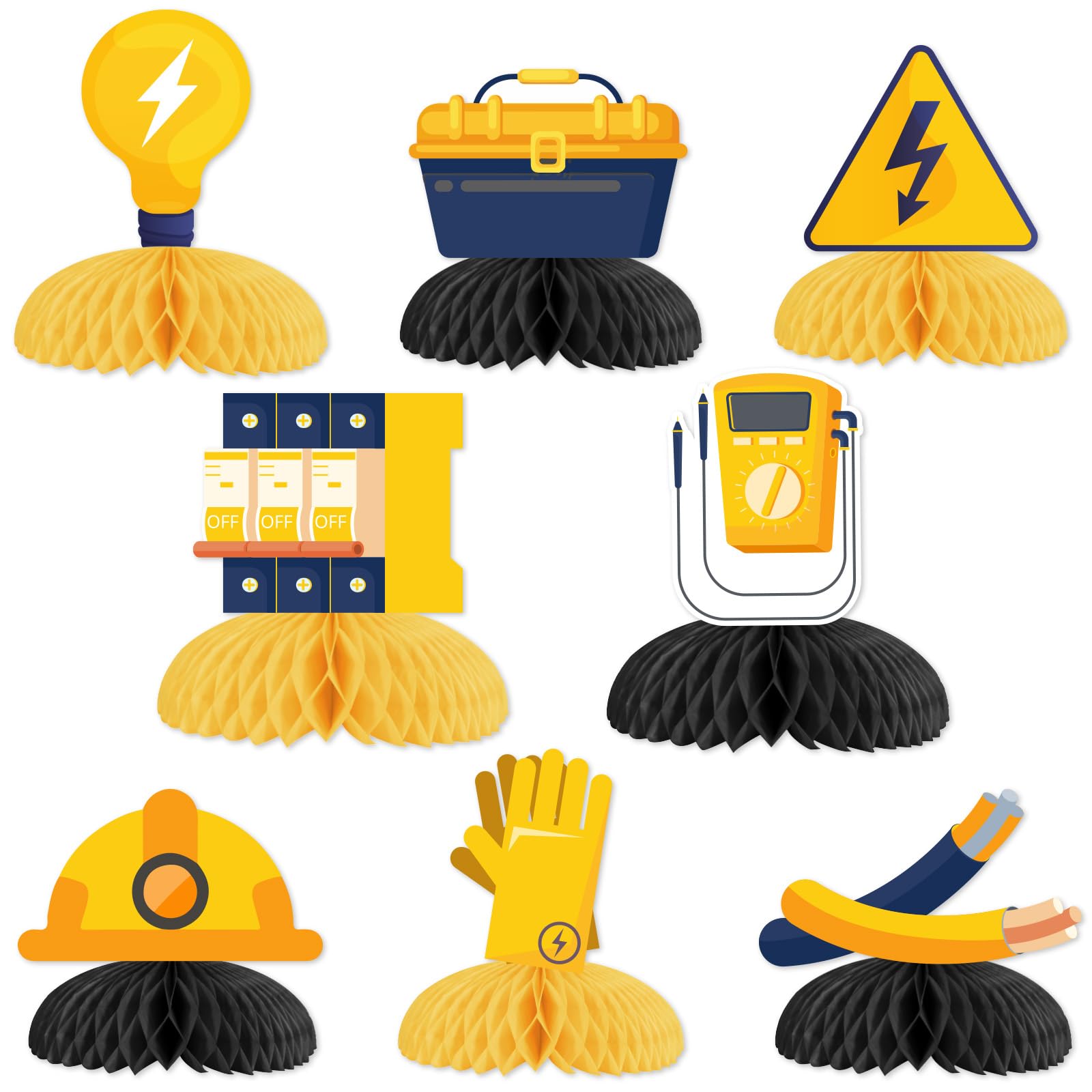 8pcs Electrician Tools Honeycomb Centerpieces Electrician Lineman Theme Decor Electrician Retirement Table Toppers Electrician Employment Decor for Men Construction Birthday Retirement Supplies