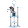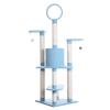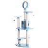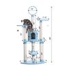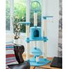 Look out kitties! it’s Armarkat’s model B6605 classic cat tree. This 65-inch tree has five levels of fun, including a round playhouse, perch, and hanging tunnel. 8 Scratching posts in different heights help cats encourage positive scratching behavior and meet different scratching. F & B bullet: 65" height cat furniture , sky blue with high density faux fleece cover for felines comfort and soft, coverings are permanently adhered to wood structures. Well constructed of 15mm pressed wood material, making it not only thicker but stronger and keep it in shape. Features with 22" x 22" big baseboard to avoid wobbling or tipping over. Dimensions:base Dimensions:22" x 22" , playhouse Dimensions:12"(W) x 12"(H) perch Dimensions:12" x 10" post diameter: 3.5" maximum holding weight: 40 lbs. Six-months warranty included. Replacement parts available from manufacturer.