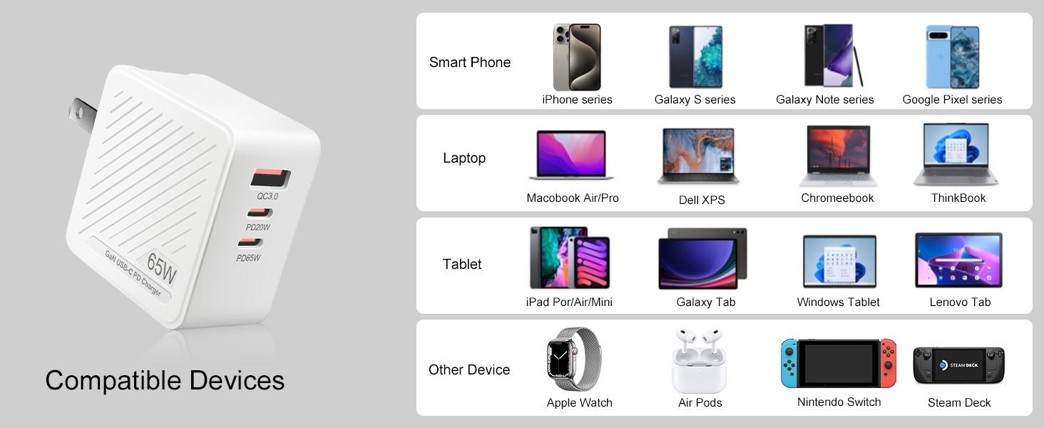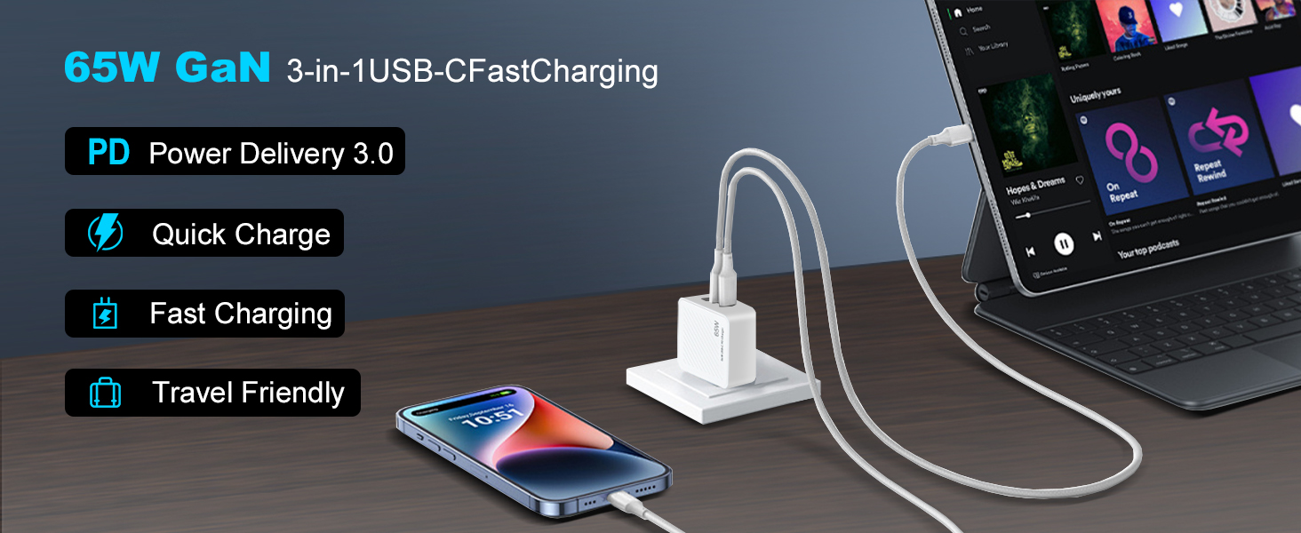 -My overall impression: This 65W USB-C Wall Charger Block is a game-changer when it comes to charging convenience and efficiency. Its high power output, fast charging capabilities, multi-device support, and compact design make it an essential accessory for anyone with multiple devices to charge. Whether at home or on the go, this charger block delivers reliable performance and peace of mind.