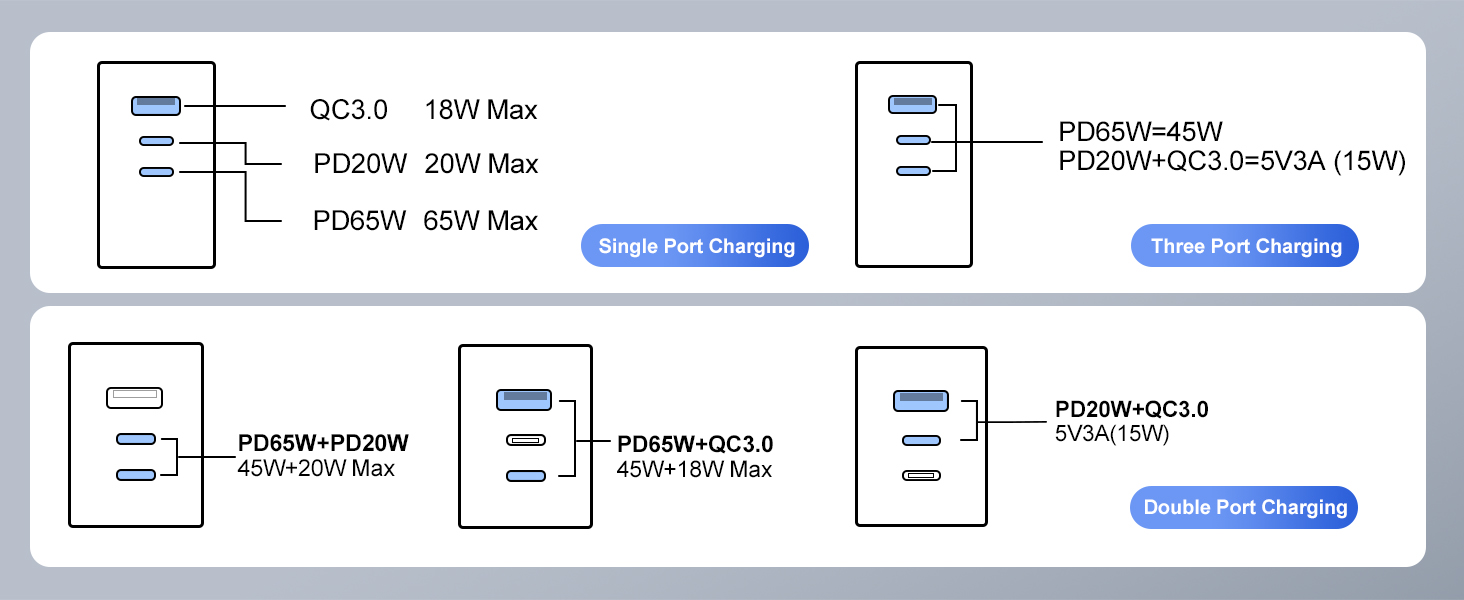 -Multi-Device Charging: The inclusion of three ports—two PD and one Type C—means I can charge multiple devices simultaneously without sacrificing speed or efficiency. It's incredibly convenient, especially when I'm traveling or working on multiple devices at once.