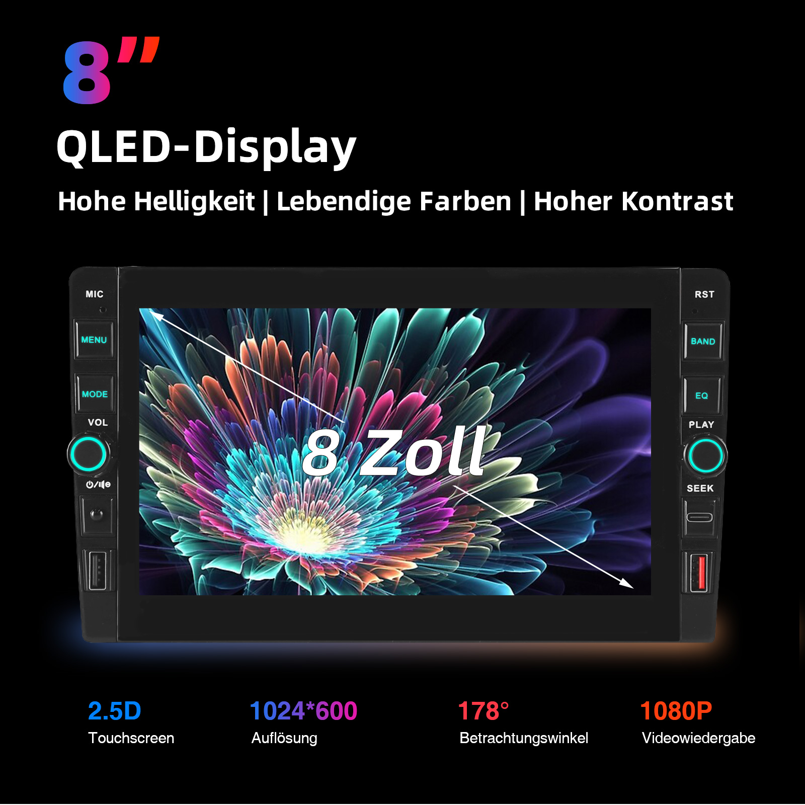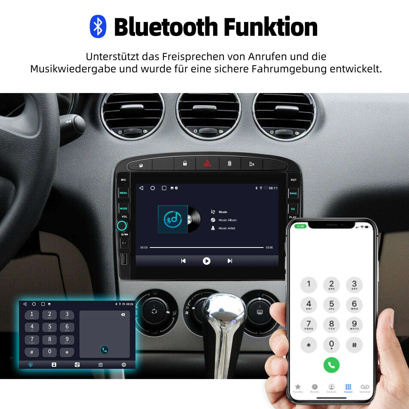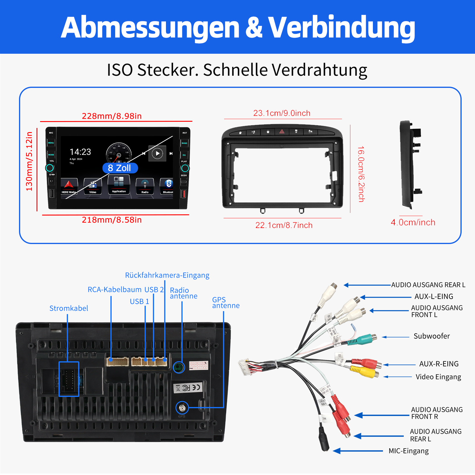 RDS/FM-Radio und Bluetooth und ASP Sound: Unterstützt Bluetooth 4.1, mit integriertem Mikrofon, damit Sie während der Fahrt freihändig telefonieren können. Unterstützt den Zugriff auf das Telefonbuch, die Musikwiedergabeschnittstelle usw. RDS unterstützt. Sie können 18 FM Radiosender speichern. Eingebauter ASP-Chip. Unterstützt 32-Band-EQ-Einstellung, die nach Ihren persönlichen Vorlieben eingestellt werden kann.Der Ihrem Originalsound sehr ähnlich ist.4 x 45W Verstärker, Surround-Sound und Subwoofer-Ausgang.