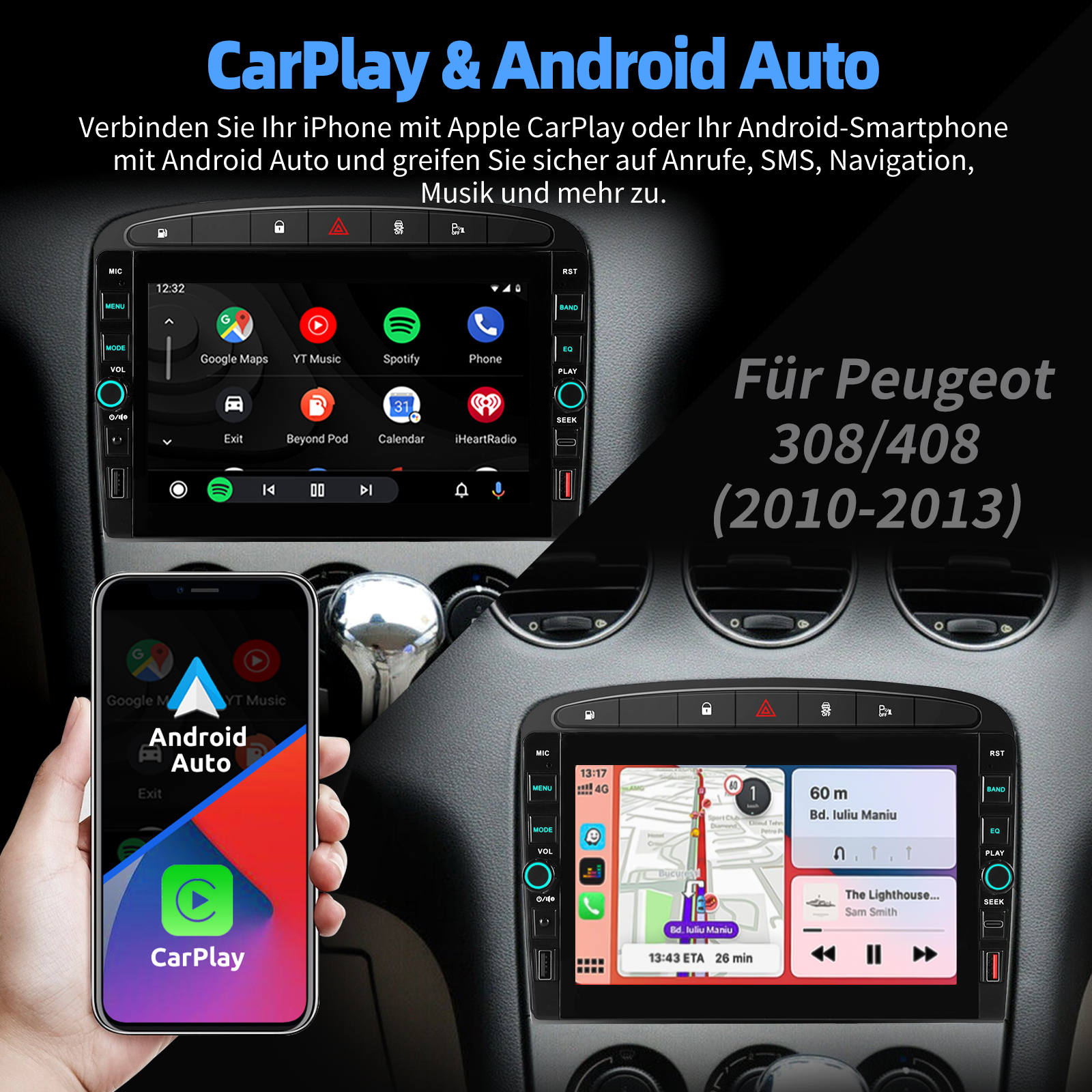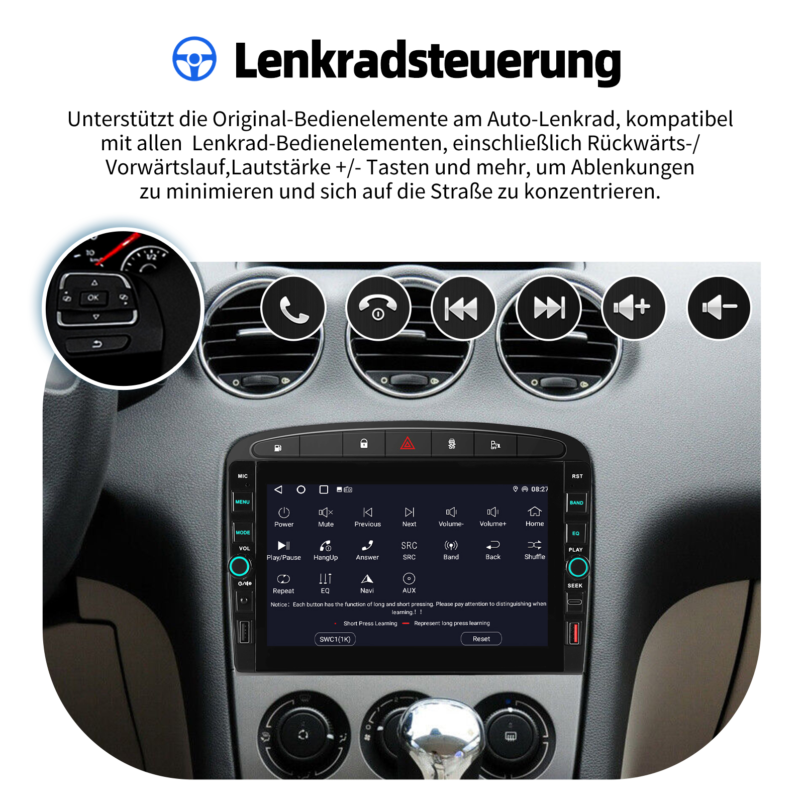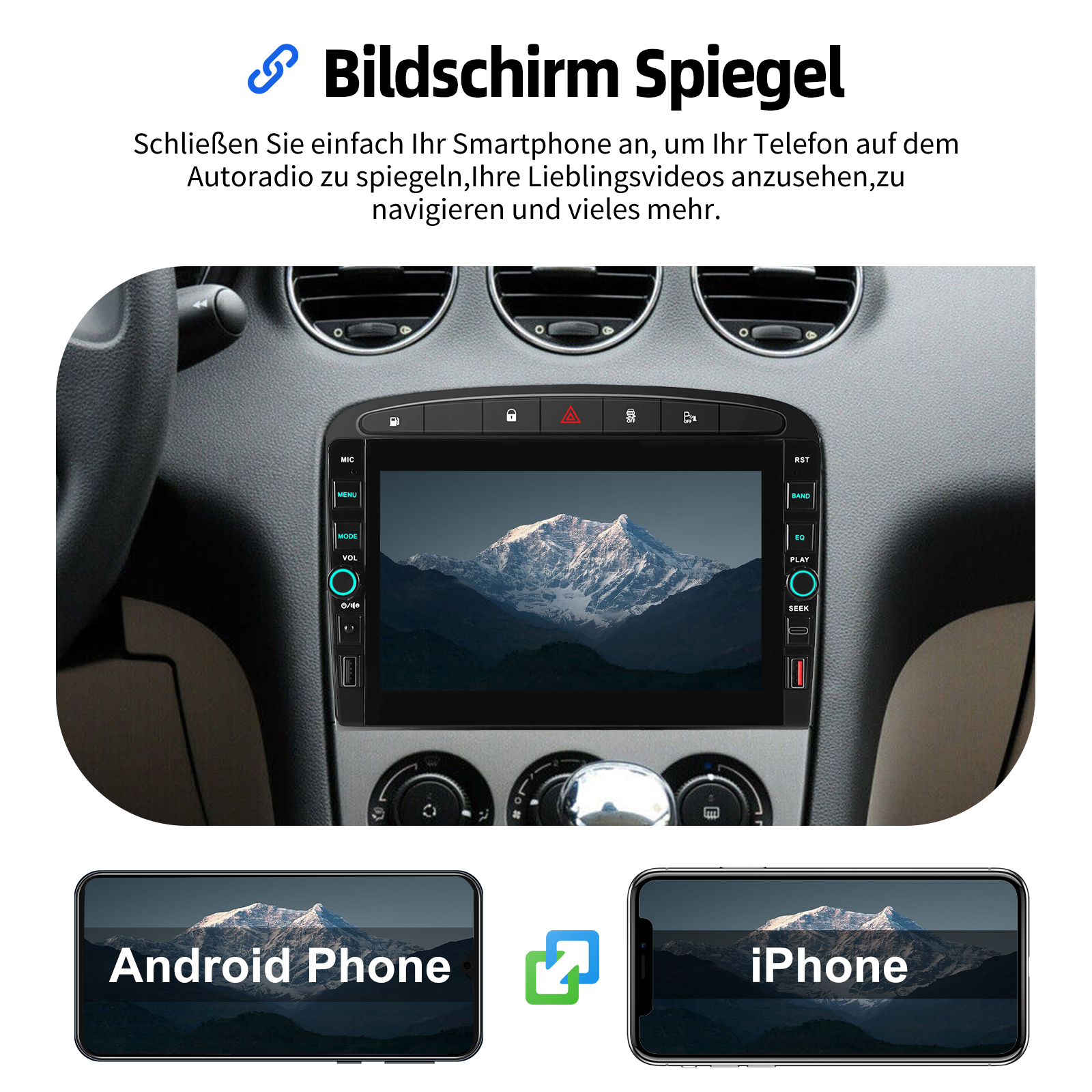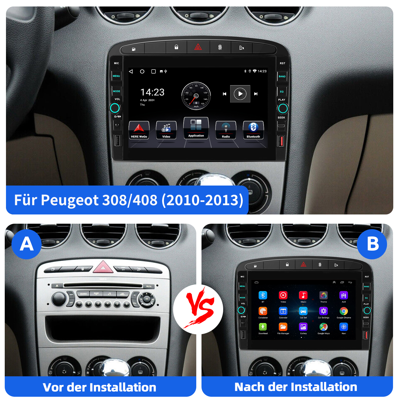 8 Zoll Android 15 Autoradio Für Peugeot 308 408 2007-2013:Das Android Autoradio mit 8" 800* 480 IPS kapazitivem Touchscreen, 1GB RAM und 32GB ROM ermöglicht das Herunterladen Ihrer Lieblings-Apps und -Videos, damit das Autofahren nicht mehr langweilig wird. Kein zusätzlicher Rahmen, kein Kabelwechsel, Plug and Play. Es wird mit Canbus geliefert und unterstützt die meisten Originalfunktionen: Lenkradsteuerung, Rückwärtssignale und Lesen von Original-Computerdaten usw.