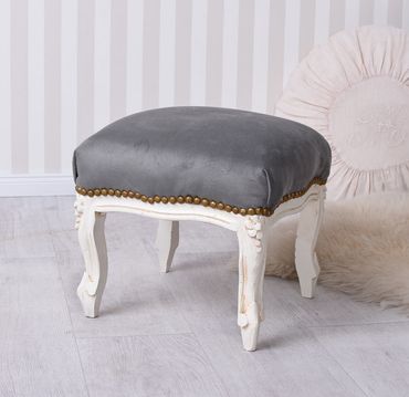 Mit einer Höhe von ca. 32 cm, einer Breite von etwa 40 cm und einer Tiefe von rund 38 cm eignet sich das Fußbänkchen ideal als stilvoller Fußschemel, als Beistellhocker im Schlafzimmer oder als elegante Ergänzung zu Schminkkommode, Leseecke oder klassischem Sessel.