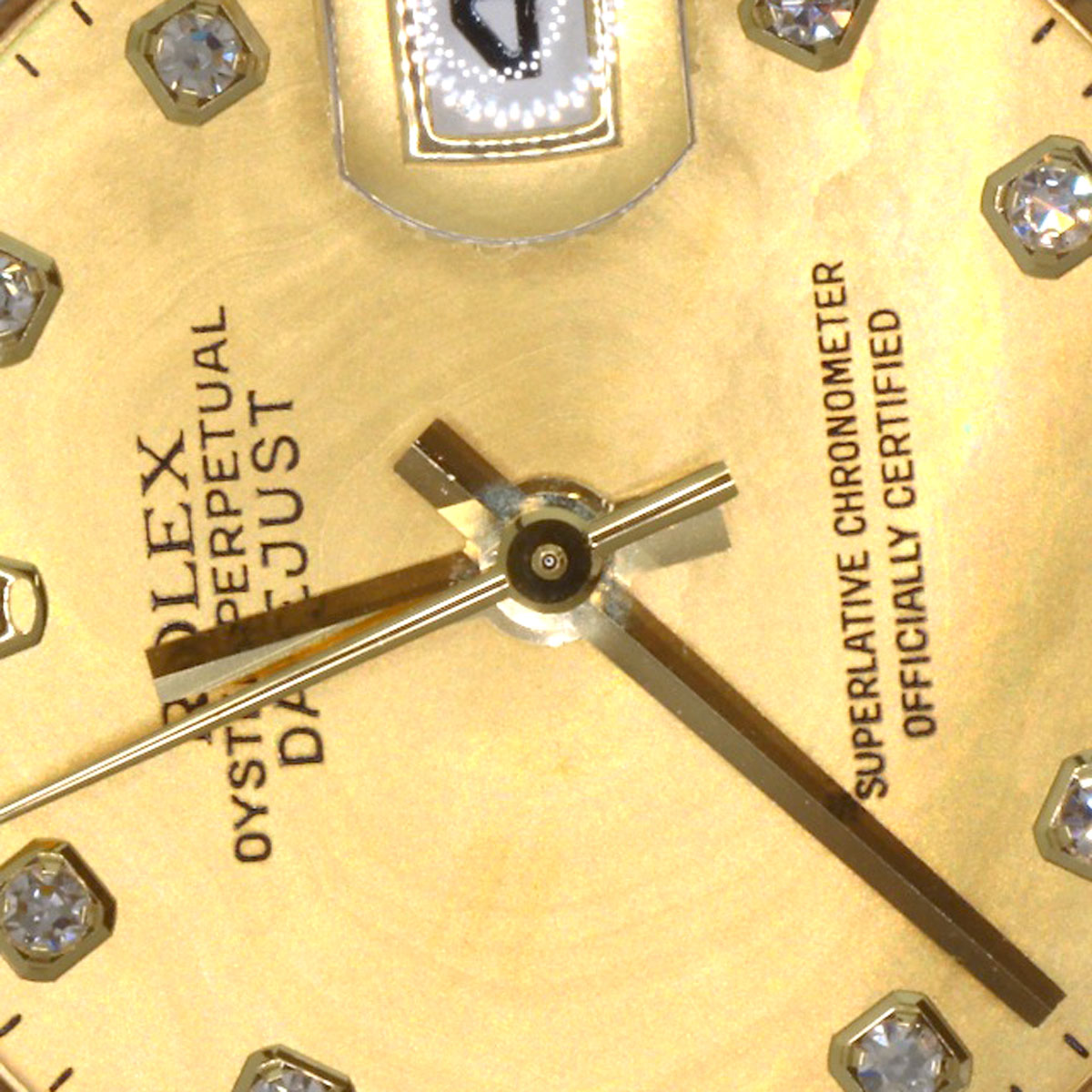 There are multiple chips on the edge of the glass and a slight scratch in the center of the glass. The movement of the base of the band at 12 o'clock is stiff.