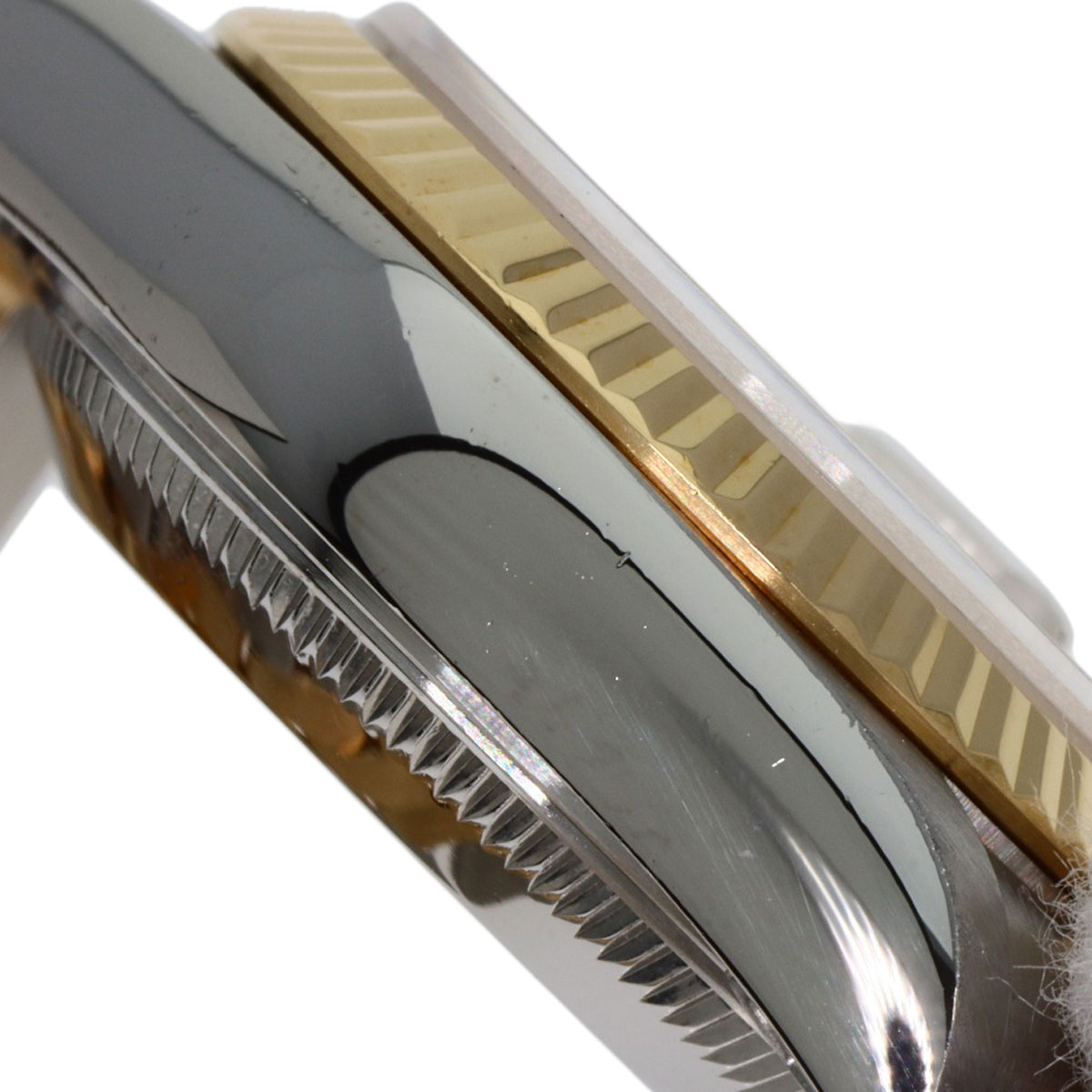 There are several slight scratches on the edge of the glass. There is a slight scratch on the glass surface at the 12 o'clock position. The minute hand is dull.