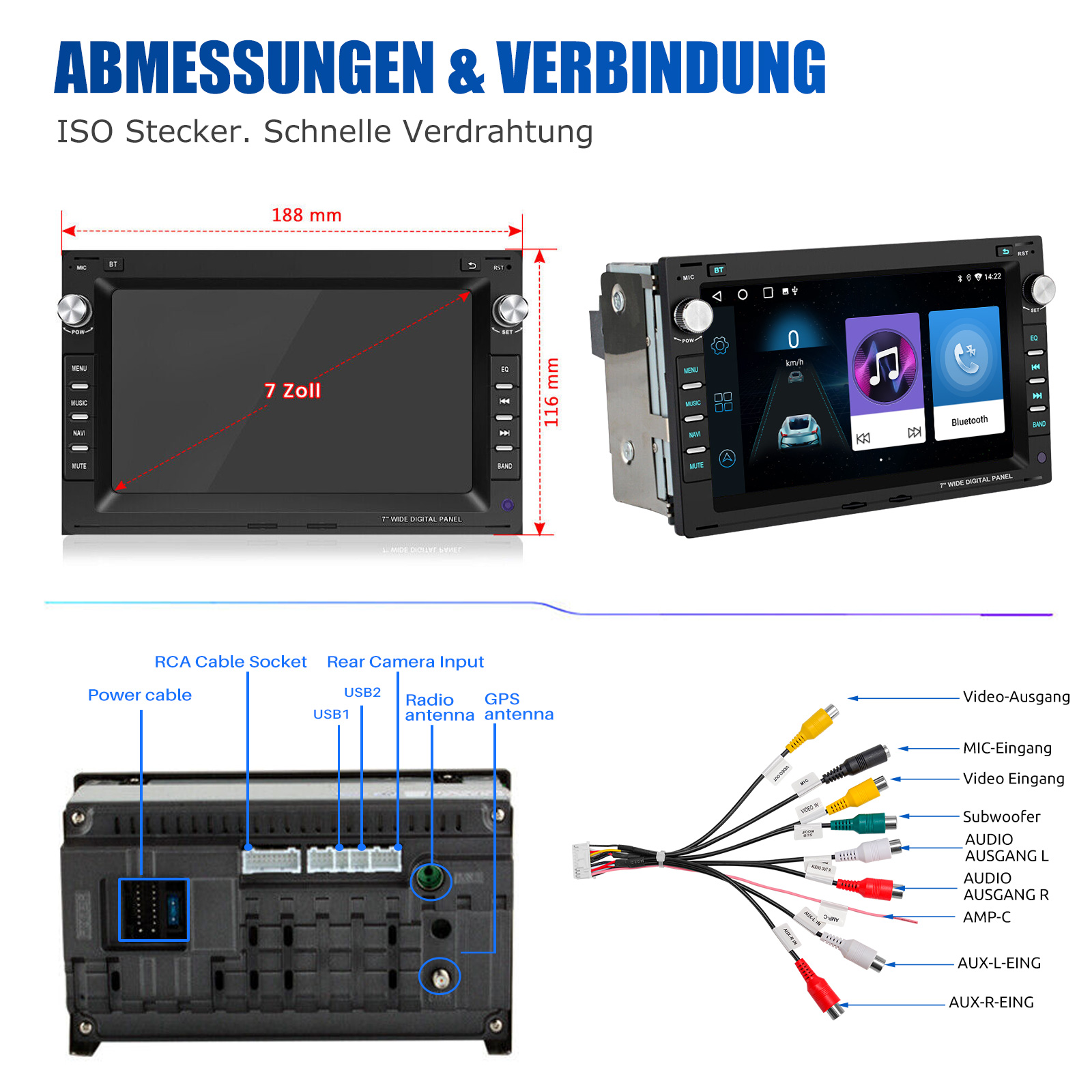 Externes Anti-Noise Mikrofon: Autoradio mit eingebautem klarem Mikrofon und externem Anti-Noise-Mikrofon für klare und angenehme Telefonate. Nehmen Sie Anrufe entgegen, während Sie die Hände für absolut sichere Fahrmanöver frei haben.