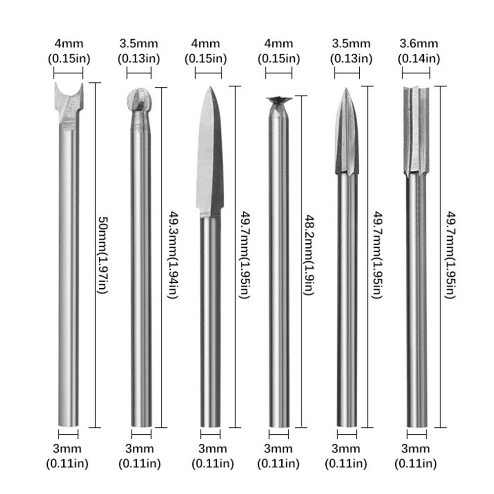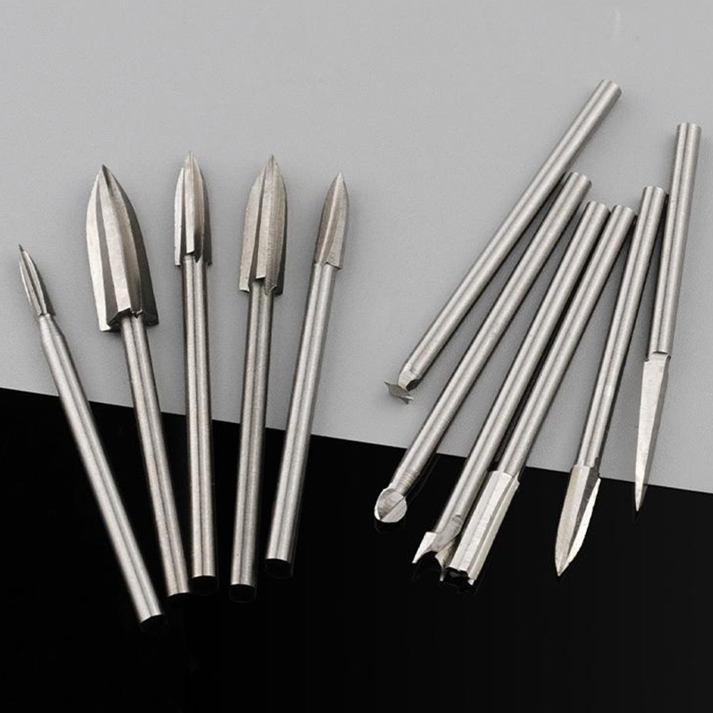 Jeu de forets à bois pour sculpture pour outils rotatifs tige 3 mm pour gravure
