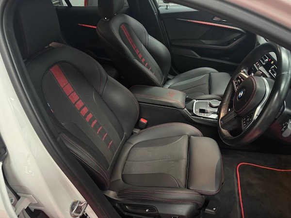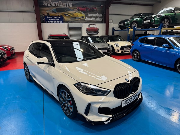 2022 22 BMW 128TI AUTO, 1 OWNER FROM NEW ONLY 12556 MILES FULL SERVICE HISTORY, 2 KEYS AND BOOK PACK. GREAT SPEC CAR, FINISHED IN ALPINE WHITE WITH BLACK HALF LEATHER HEATED SEATS, RED INSERTS WITH RED STITCHING, HAZY CARBON INTERIOR TRIM, PRO PACK, DIGITAL DASHBOARD, SAT NAV MEDIA, BLUETOOTH AUDIO, DAB RADIO, DAUL CLIMATE CONTROL, LEATHER MULTI FUNCTION STEERING WHEEL, CRUISE CONTROL, SPEED LIMITER, M SPORT PLUS BRAKES WITH RED CALIPERS, M SPORT PLUS BODY KIT, PRIVACY GLASS, FRONT AND REAR PARKING SENSORS, POWER FOLD MIRRORS, SPORTS MODES WITH PADDLE SHIFT, DIAMOND CUT ALLOYS, AUTOMATIC LED HEADLIGHTS, AUTO WIPERS AND MUCH MORE. EXCEPTIONAL THROUGHOUT CAT N RECORDED, 6 MONTHS ROAD TAX, REMAINDER OF MANUFACTURES WARRANTY 03 2027, FULLY VALETED AND SERVICED ON COLLECTION OR DELIVERY, CHOICE OF 25 MINI ONE, CLASSIC, COOPERS, CLUBMAN, COUNTRYMAN, CONVERTIBLES, JCW IN STOCK NOW. IF YOUR LOOKING FOR A MINI CALL RICHARD CHECK OUT OUR GOOGLE REVIEWS @28STATECARS