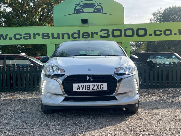 ULEZ / BLUETOOTH AUDIO / IDEAL FIRST CAR / FINANCE AVAILABLE / WARRANTY AVAILABLE / 2 PREVIOUS OWNERS.This 2018 DS 3 PureTech Chic is a smart choice for those seeking an economical and stylish compact car. Featuring a 1.2 litre petrol engine, this Euro 6 compliant model offers a refined driving experience. Inside, you'll find essential comfort with air conditioning, and for your convenience, Bluetooth handsfree and media streaming capabilities are included, complete with a USB socket for easy device connection.The DS 3 PureTech Chic stands out with its impressive fuel economy, achieving a remarkable 61 miles per gallon, which indicates it is more efficient than many other vehicles in its class. Furthermore, its low insurance group rating suggests that running costs will be more affordable. The vehicle also boasts low CO2 emissions, highlighting its environmentally conscious design and potentially lower road tax contributions.We are a local family run business in the process of establishing ourselves as national leaders in the affordable used car market, we accept most debit cards and outside finance deals. Cars Under 3000 won the Autotrader Retailer Awards 2025, we also have several highly rated Autotrader accolades portraying our attention to detail and customer care we provide. With 200 cars in stock between £1,000 & £10,000, there's something for everybody, so come on down to one our 2 local dealerships in Rayleigh, Essex. All retail vehicles come with a long MOT and 3 months warranty upgradable & extendable at point of sale. We have a specialist in-house finance team who can help you spread your costs over several years if needed. We can even help those with poor credit profiles. With our focus on prioritising customer experience and amazing service at affordable prices, we don't believe anybody does it quite like us. Don't take our word for it, check out our 5,000+ 5 STAR reviews and recommendations across the web. Thanks for looking and see you soon. The Cars Under 3000 Team!!!