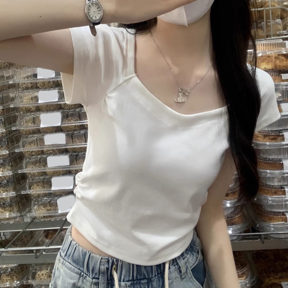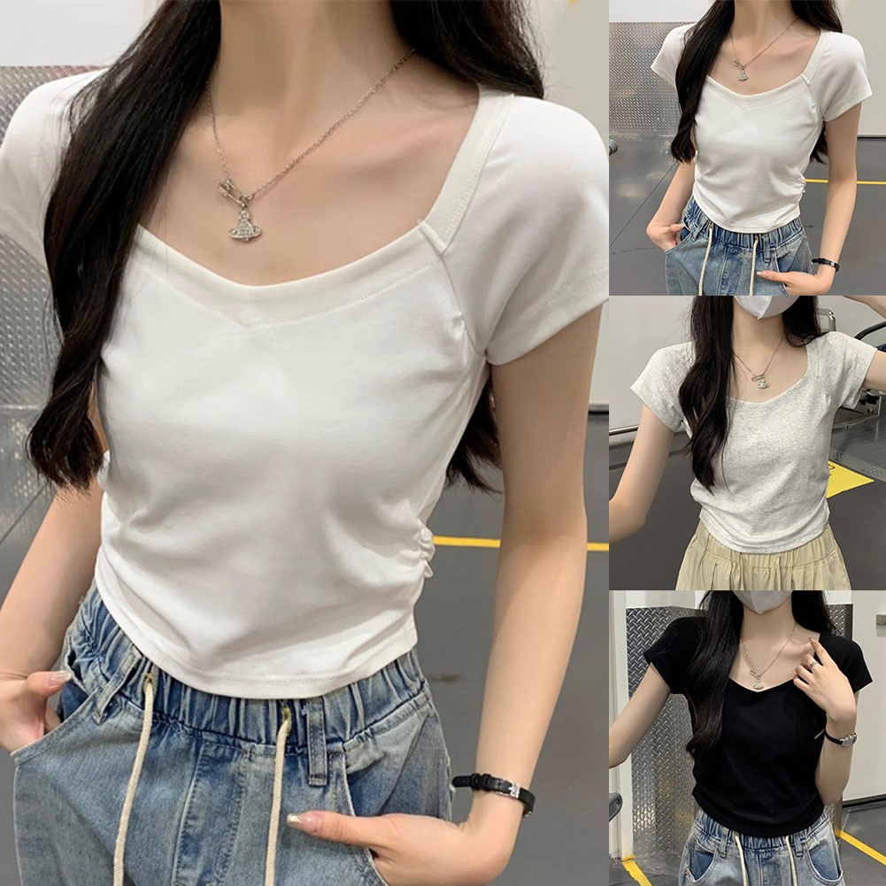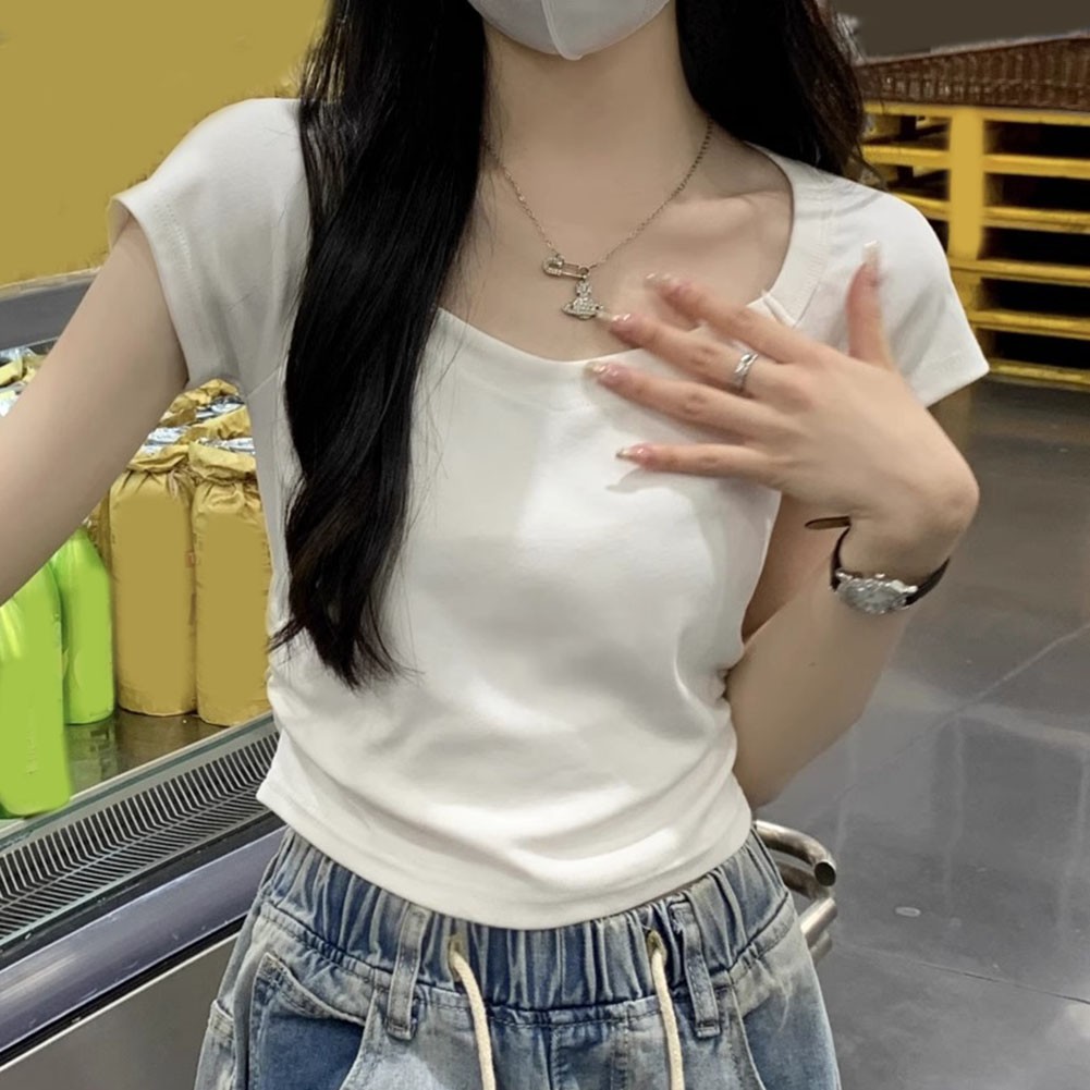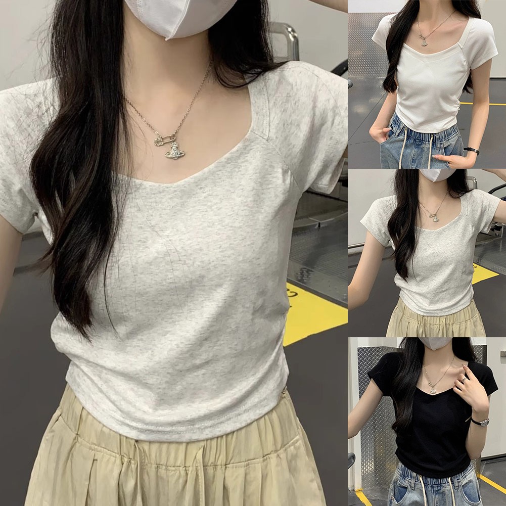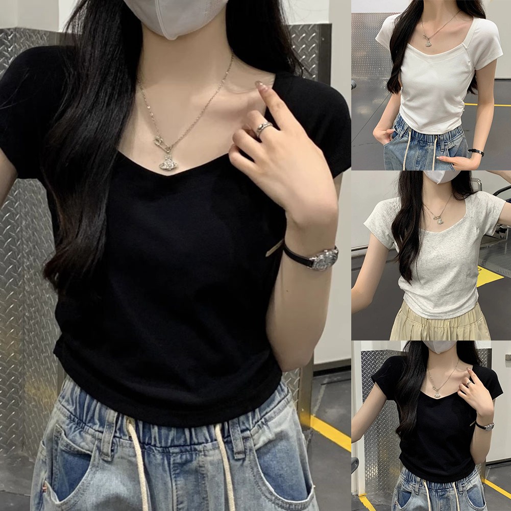 * Item Features:Women,Summer Solid Color Slim Short Sleeve T-Shirt,Fashion Basic Hot Girl Top