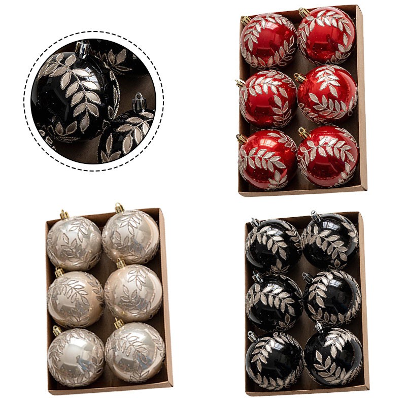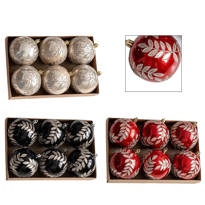 Kit boule de Noël vacances 8 cm ornement plastique couleurs noir et rouge