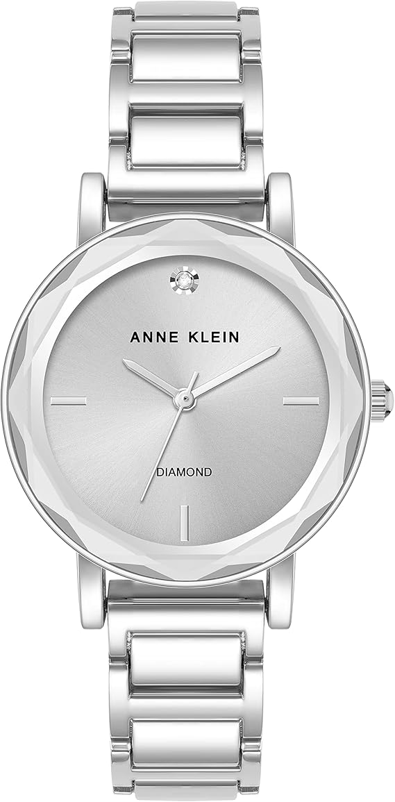 Anne Klein Silver-Tone Faceted Crystal Diamond Dial Ladies Watch AK-3967SVSV