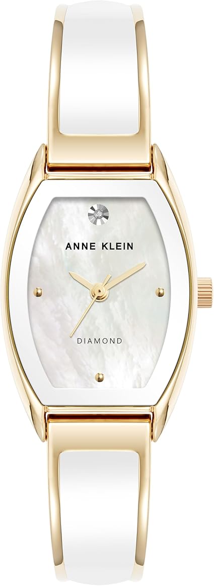 Anne Klein Gold-Tone Mother-of-Pearl Enamel Bangle Diamond Ladies Watch
