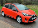 ? Open by appointment please call? £20 Road Tax Per Year? Limted ''Orange'' Edition? Panoramic Glass Roof? Satellite Navigation ? Reverse Camera? DAB Digital Radio? Cruise Control? 6 Services? 12 Month MOT Included Discover this 2016 Toyota Yaris VVT-h Orange Edition, a well presented example of this popular hatchback. This Euro 6 compliant model boasts a 1.5 litre petrol hybrid engine, offering an impressive fuel economy of up to 86 miles per gallon. Inside, you'll find a comfortable and convenient cabin featuring a Skyview panoramic roof with a fixed sunroof, Bluetooth connectivity for seamless audio and calls, and a reversing camera to aid with parking. The dual zone automatic air conditioning ensures a pleasant environment for all occupants, regardless of the weather outside.This Toyota Yaris stands out with its exceptionally low CO2 emissions and its placement in a low insurance group, which can help to keep your running costs down. These highlights demonstrate how this Yaris offers a more economical and accessible ownership experience compared to many other vehicles in its class.