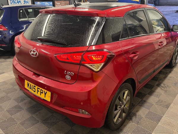 Hyundai i20 1.4 Premium SE Hatchback 5dr Petrol Manual Euro 6 (100 ps)Mileage: 120,000 milesBook pack presentSpecificationSatellite navigation, rear parking sensors, cruise control, climate control air conditioning, heated front seats, heated steering wheel, Bluetooth connectivity, DAB radio, multifunction steering wheel, electric windows, electrically adjustable mirrors, alloy wheels.Service historyThe following is all the service history we currently hold on file from Hyundai. Any additional service history has unfortunately been lost:13/03/2015 – Pre-Delivery Inspection – 10 miles21/03/2016 – Vehicle Health Check – 12,344 miles21/03/2016 – Panel & paint body repair – 12,344 miles05/09/2016 – 20,000 mile service – 21,437 miles17/05/2017 – 3 year / 30,000 mile service – 31,239 miles17/05/2017 – Vehicle Health Check – 31,239 miles24/01/2018 – 4 year / 40,000 mile service – 41,336 miles24/01/2018 – Vehicle Health Check – 41,336 milesA service and new MOT will also be carried out as part of our preparation process.Vehicle informationPlease refer to the photographs for full overall condition.A 3-month comprehensive warranty is included, with the option to extend for up to two years. Part exchange welcome for any value and our Buying Department can provide prompt valuations. Nationwide delivery available at additional cost and the vehicle can be reserved today with a £250 fully refundable deposit.We have over 150 vehicles in stock and have been established since 2021, building a strong reputation for customer service and excellent reviews. All our retail vehicles are fully health-checked and prepared to a high standard. As an AA Approved Dealer with Trading Standards endorsement you can buy with confidence. Every car includes 12 months free AA roadside breakdown and recovery regardless of age, value or mileage. We are regulated and authorised by the Financial Conduct Authority under FRN: 1014981.