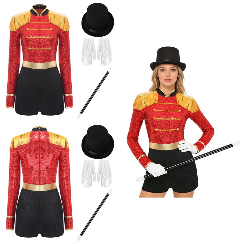 The 4-piece set including gloves, hat, and wand provides a complete and immersive dress-up experience, allowing you to fully transform into a magician or ringmaster.