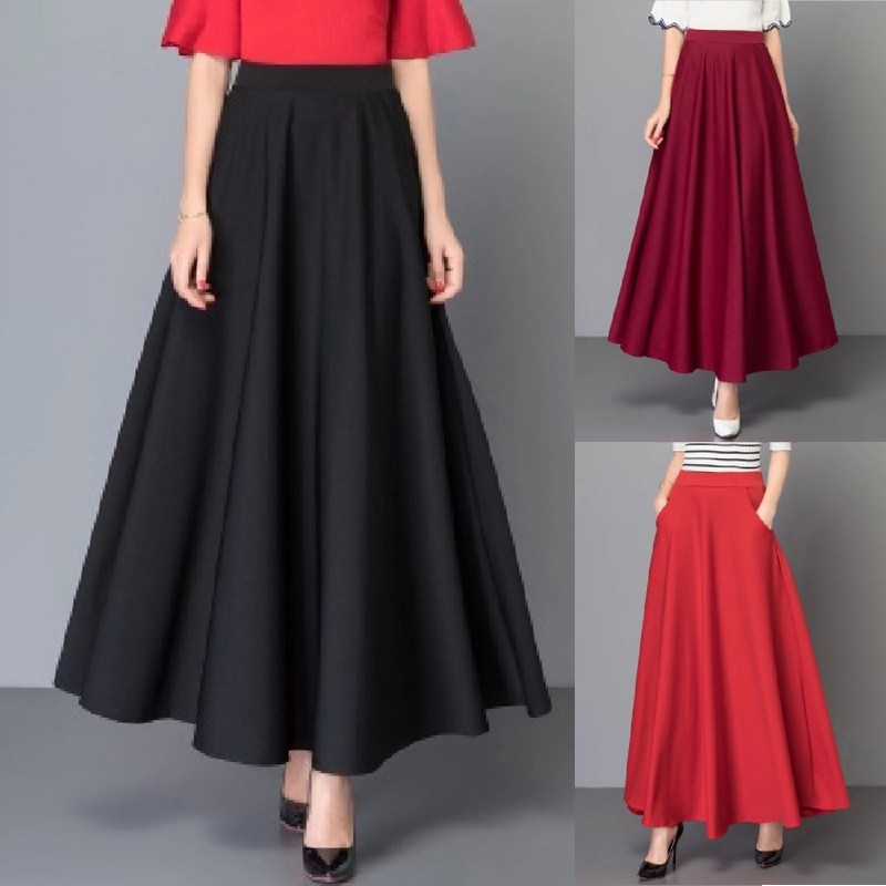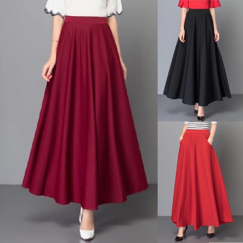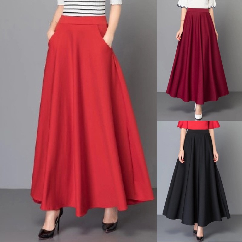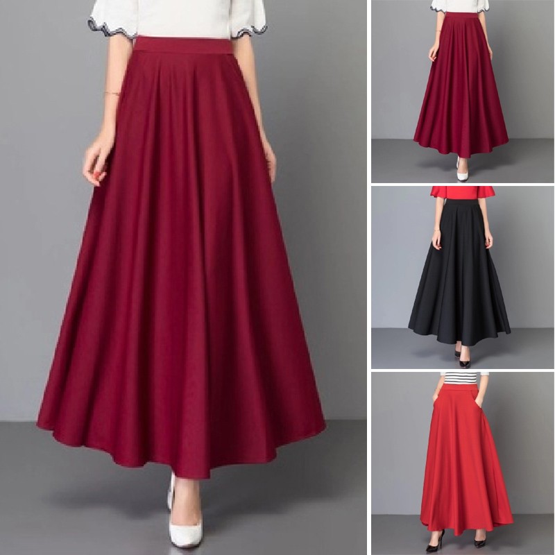 * Description de l'article : jupe plissée ample décontractée taille haute pour femmes ligne A grande balançoire grande taille