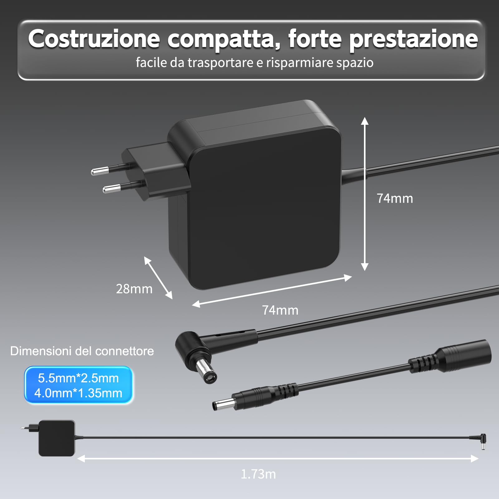 🔎 Questo caricabatterie per laptop da 65 W con certificazione CE, FCC, RoHS per la sicurezza. Prodotto con chip intelligente, materiali di isolamento di alta qualità contro sovraccarico, sovratensione e cortocircuito. Fornisce protezioni multiple per il tuo laptop.