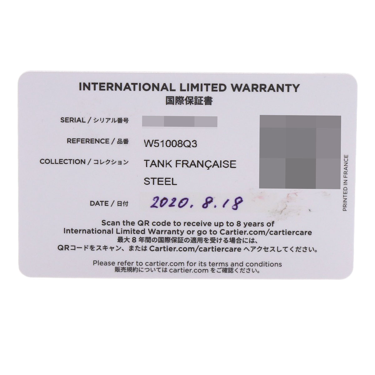 | Accessories | Box and Cartier international warranty (August 2020) |