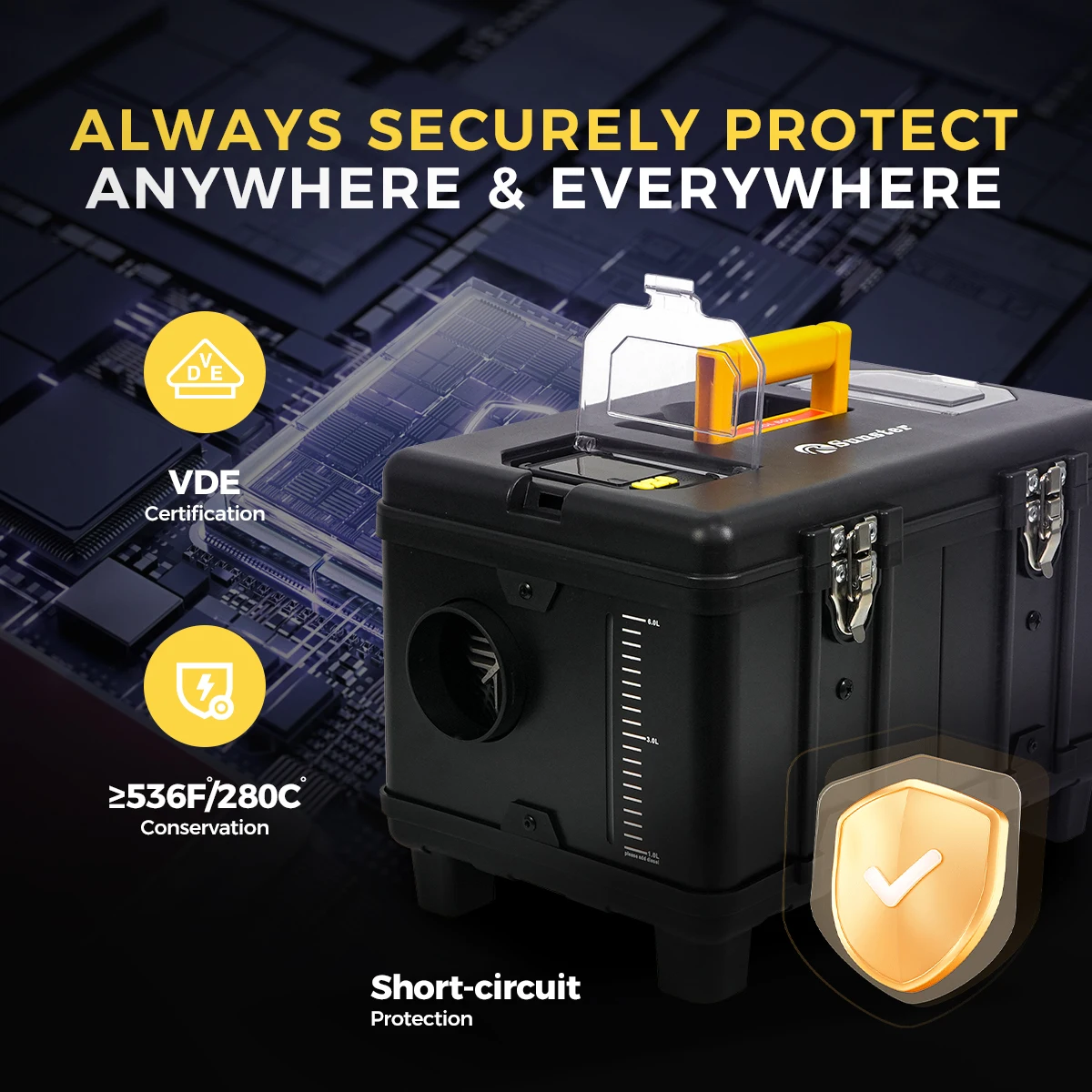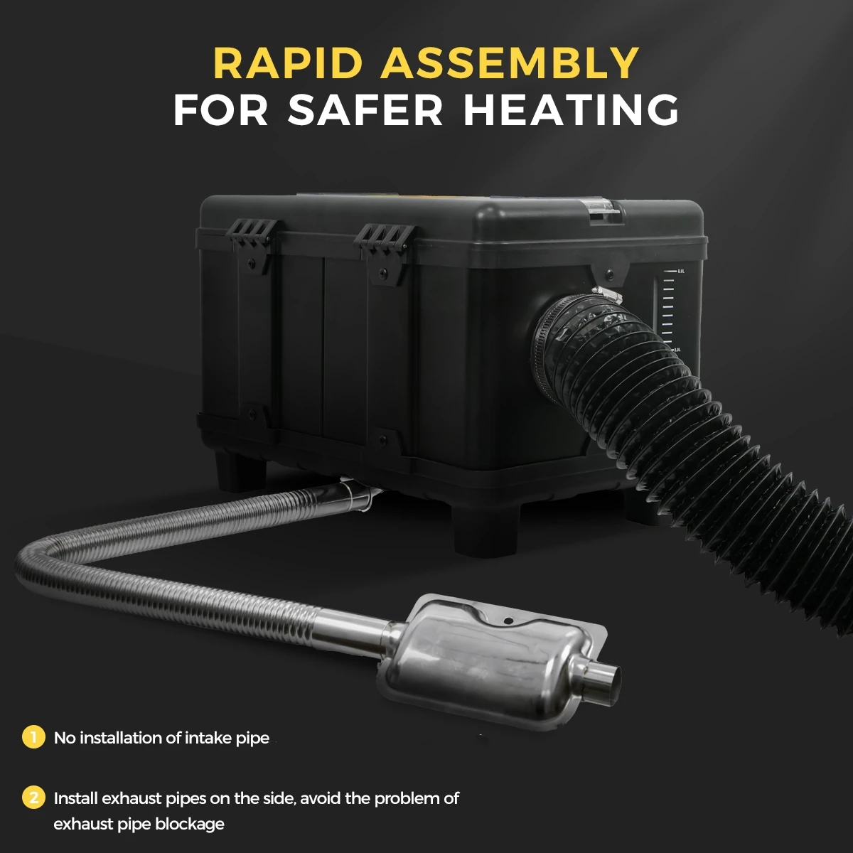 ✅Multiple Protection:Engineered with multiple safety protections,including over-heating,short-circuit, reverse connection,and over-voltage safeguards, this portable diesel heater ensures safeand reliable operation in any environment.