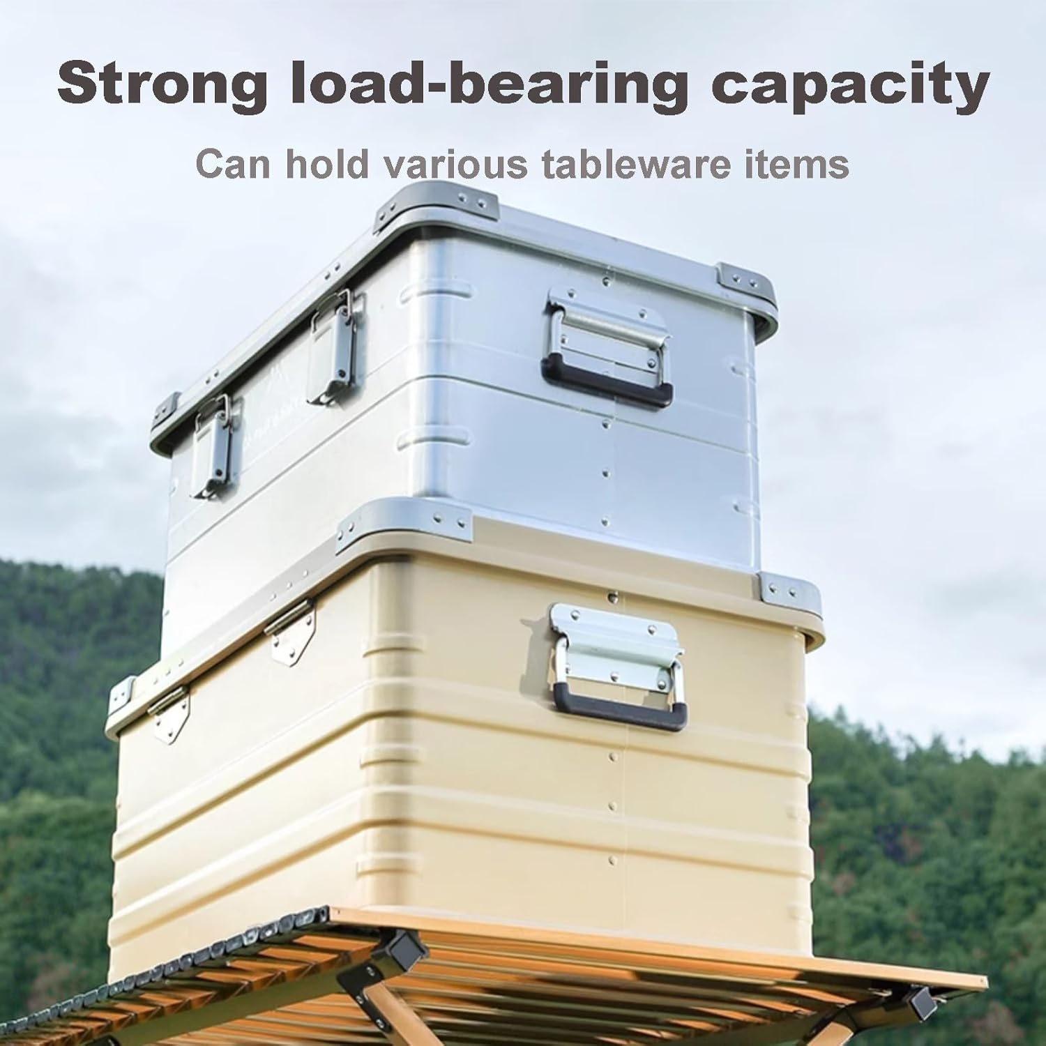 DAUERHAFTES UND QUALITÄTSVERBINDLICHES MATERIAL: Die Tischplatte und die vier Beine des Klapptisches sind aus Metall gefertigt, das langlebig, wasserdicht und leicht ist.