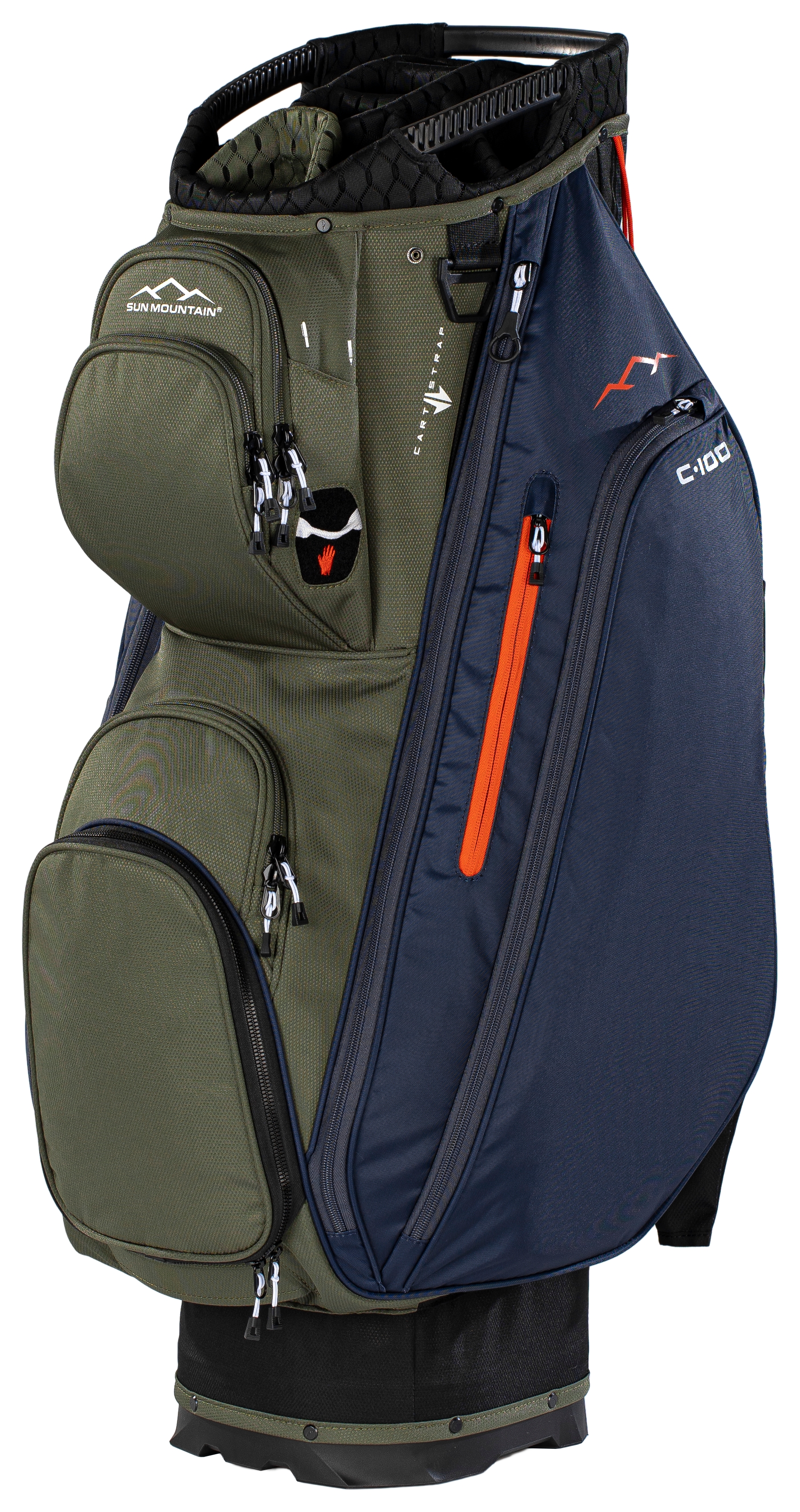 The Sun Mountain C-100 Cart Golf Bag delivers exceptional organization and convenience for golfers who demand performance and style. Featuring 14 individual club dividers, this bag keeps your clubs protected and easy to access. Ten thoughtfully designed pockets�including two velour-lined valuables pockets, two full-length apparel pockets, and a dedicated beverage pocket�offer ample storage for all your essentials. Its innovative cart strap pass-through ensures every pocket remains accessible when secured to a cart, making it the perfect companion for a smooth, efficient round on the course.