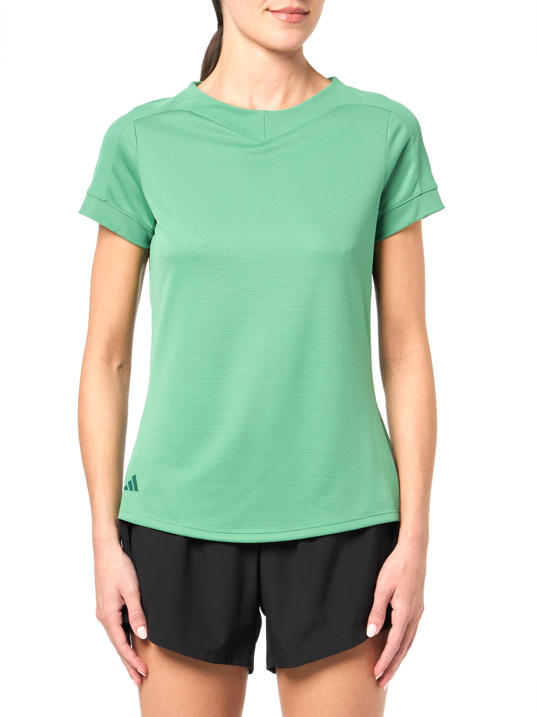Look and feel your best from tee to green in this Ultimate365 golf tee from adidas. Comfy doubleknit provides full mobility while the scooped hem offers extra coverage when you twist and bend. Seamless shoulders and ribbed cuffs add to the performance feel and deliver distinctive style on and off the course. This product is made with 100% recycled materials. By reusing materials that have already been created, we help to reduce waste and our reliance on finite resources and reduce the footprint of the products we make.