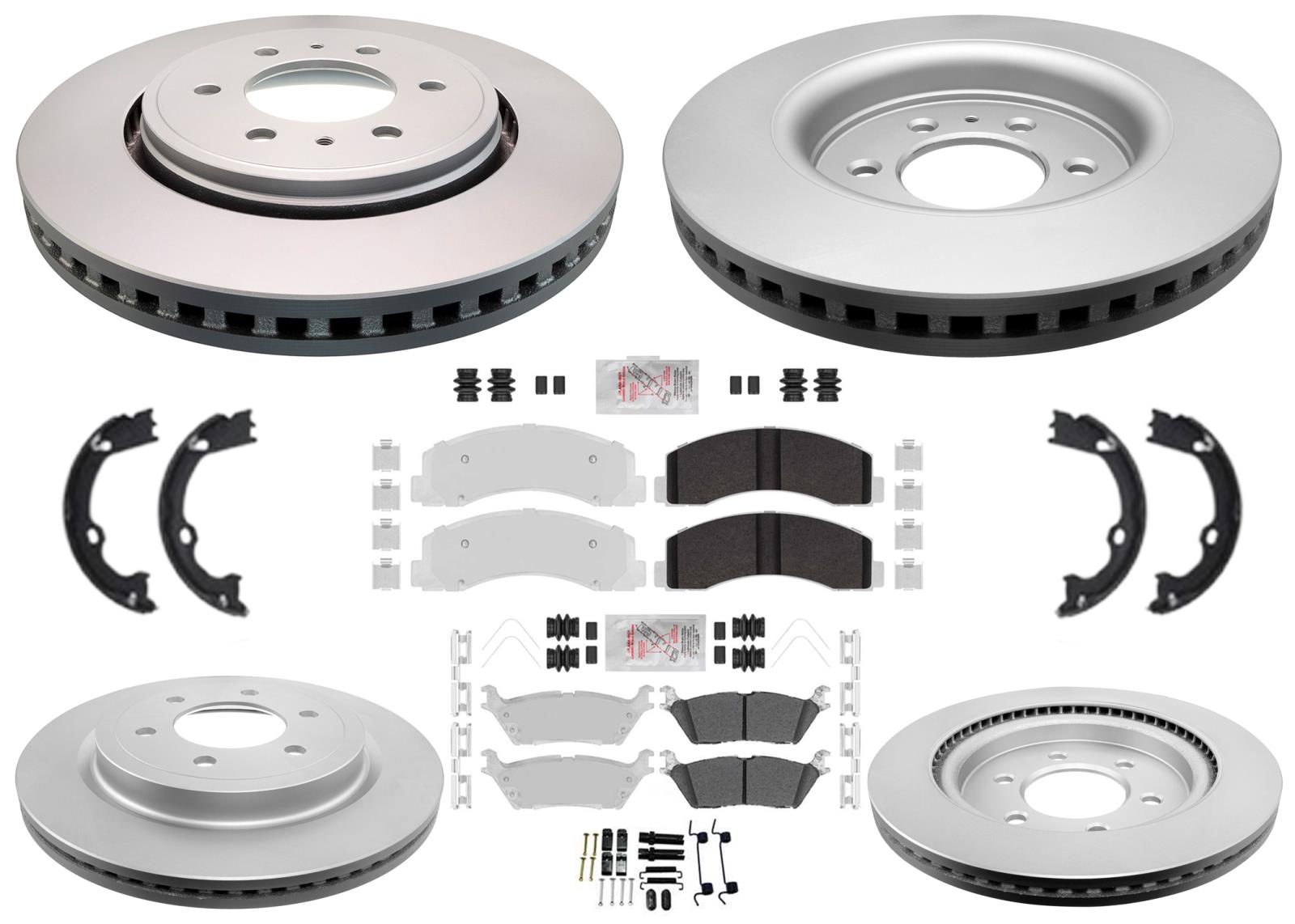 This Listing is for AME Master Brake Service Kit with Anit Corrosion GEO Coated Improved Performance Disc Brake Rotors and AmeriPro Disc Brake Pads, and Installation Hardware.
