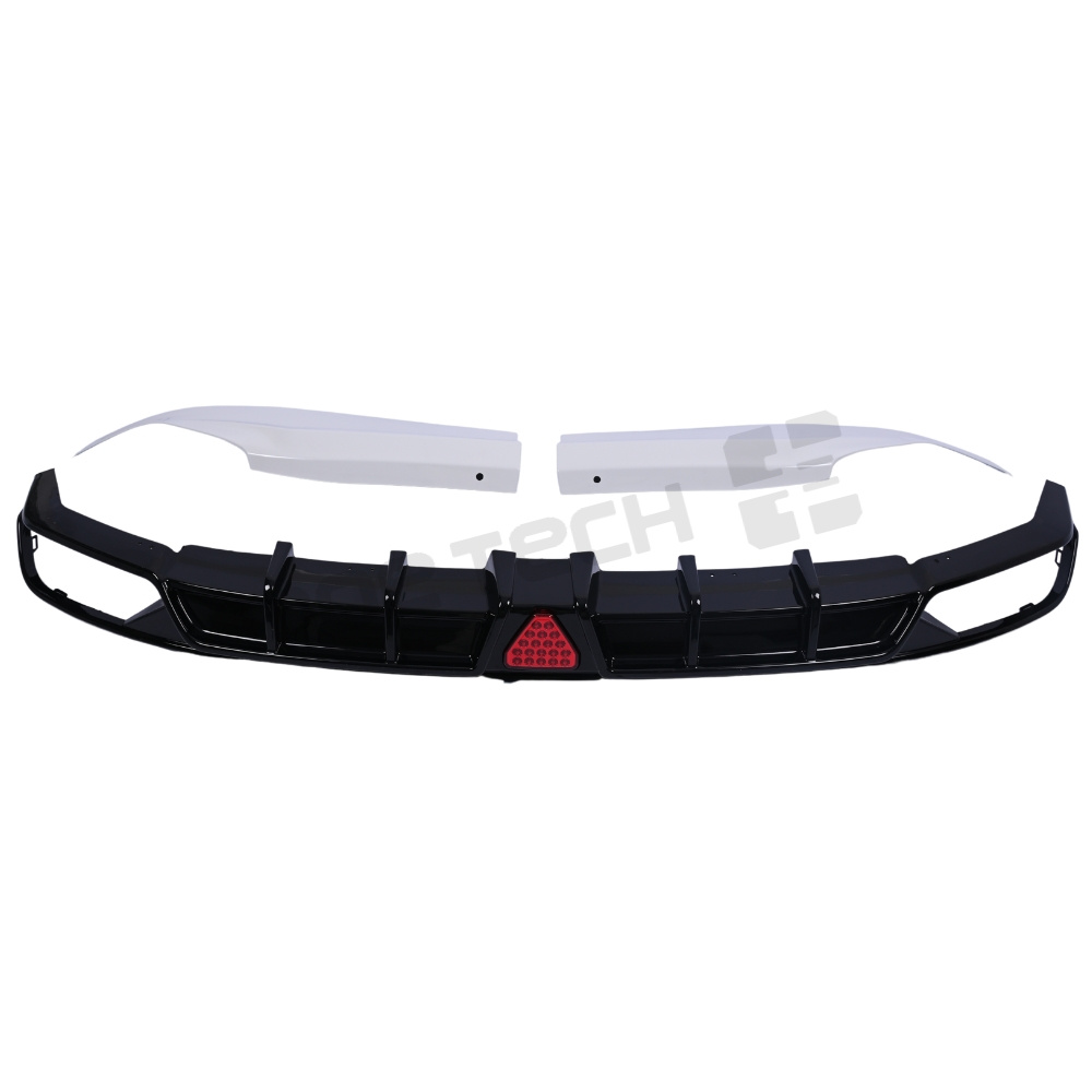 Gloss Black Rear Bumper Diffuser+White Corner Apron Spats For 2018-2021 Accord