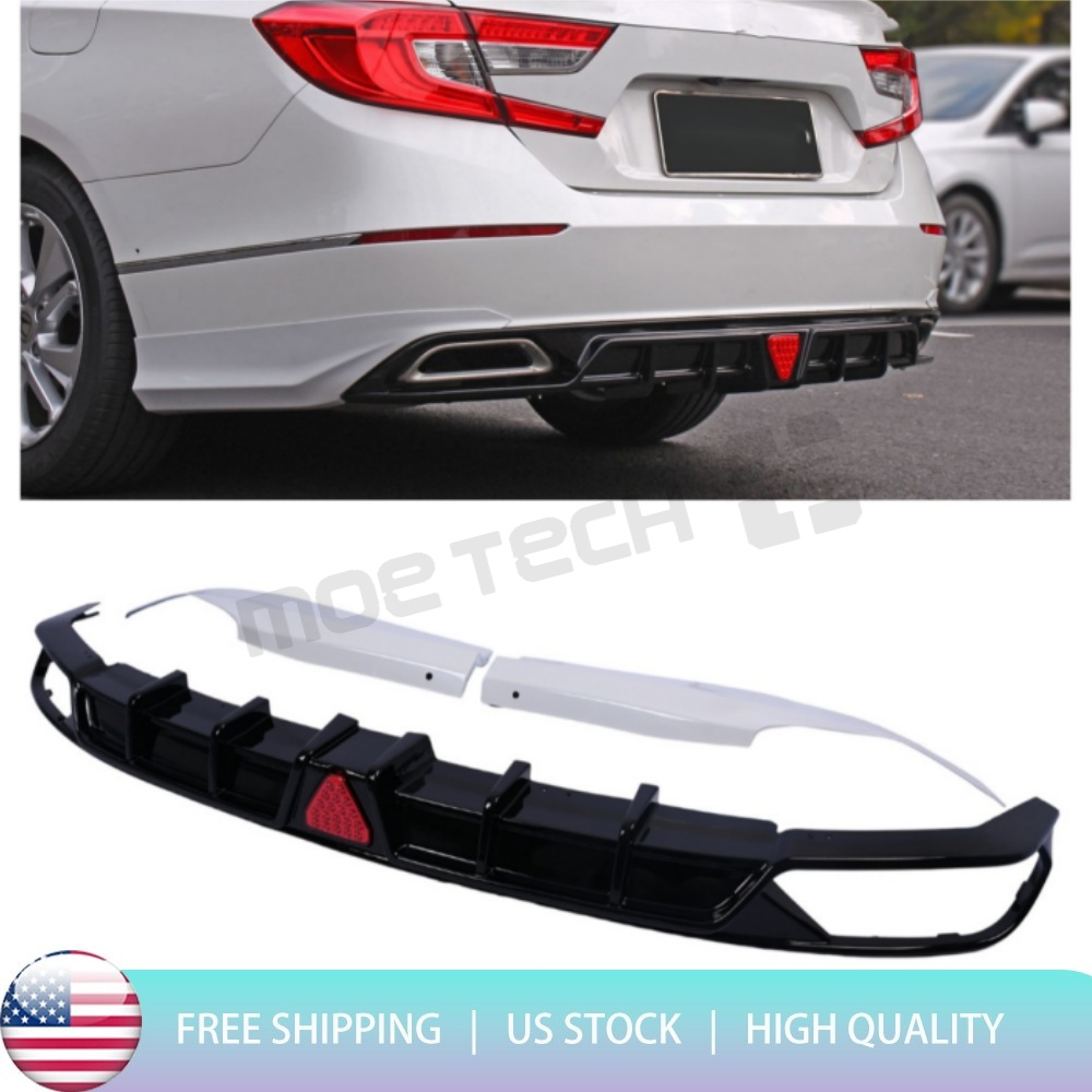 Gloss Black Rear Bumper Diffuser+White Corner Apron Spats For 2018-2022 Accord