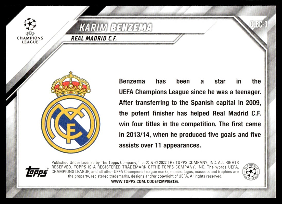 2022 Topps Champions League Trading Card Day CLBC-3 Karim Benzema
