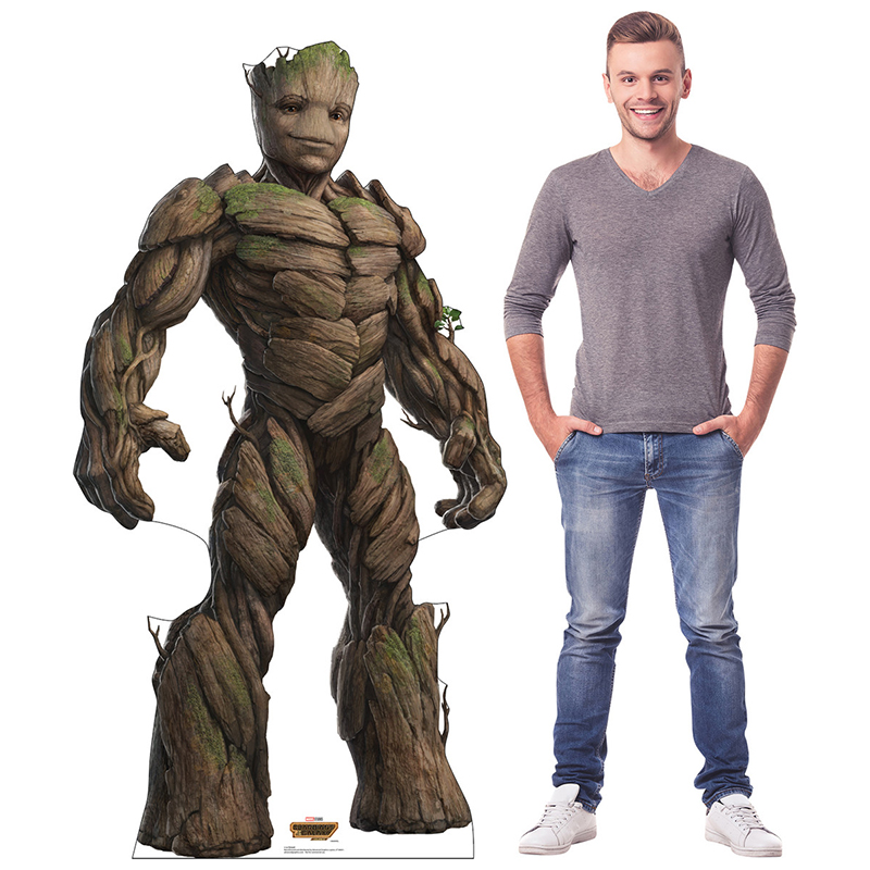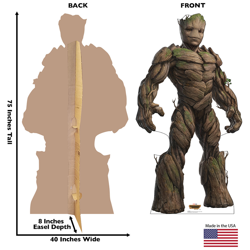 The Guardians are back! This re-released cardboard cutout from the third movie in the Marvel trilogy, Guardians of the Galaxy 3, features Groot (voiced by actor Vin Diesel) and measures 6' 3" tall.