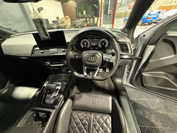 This 2022 Audi Q5 TDI Edition 1 is a superb example, having had only one owner since new. This four wheel drive SUV boasts a powerful 2.0 litre diesel engine, meeting Euro 6 emissions standards. Its impressive towing weight of 2400 kg makes it a versatile choice for various needs and it is conveniently fitted with an Audi stowaway towbar. Experience enhanced comfort and convenience with heated front seats and deluxe 3 zone electronic climate control. The Matrix LED headlights with dynamic indicators ensure excellent visibility, while front and rear parking sensors with acoustic warnings make manoeuvring effortless. Connectivity is seamless thanks to the Bluetooth interface. The Q5 also offers generous boot space, perfect for luggage or shopping. With an acceleration of 0-60mph in just 7.6 seconds, this Audi Q5 demonstrates a performance that sets it apart from many other vehicles in its class. View all our up to date stock at and Sound Package, Tow Bar - Folding, 21in Alloy Wheels - 8.5J 5-Twin Spoke - Module Design with Inlays in Matt Grey - Audi Sport, 2 USB Charging Ports -1 x USB-A and 1 x USB-C Port, 4-Way Electric Lumbar Support, 6-Airbag System, Anti Theft Locking Wheel Bolts, Anti-Theft Alarm, Artificial Leather Pack, Audi Beam with Audi Rings Logo, Audi Connect Navigation and Infotainment Services Plus - 3 Year Trial, Audi Connect with Amazon Alexa Integration, Audi Drive Select, Audi Pre-Sense City, Audi Rings Decal on Rear Doors, Audi Rings at Front and Rear in Black, Audi Virtual Cockpit Plus - 12.3in Screen and Three Different Layout Designs, Audi Wireless Smartphone Interface, Auto-Dimming Rear-View Mirror, Automatic Headlight Adjustment, Automatic Headlight and Windscreen Wiper Activation, Automatic Start-Stop with Coasting Functionality and Efficiency Programme, Black Door Mirrors, Black Roof Rails, Black Styling Package, Bluetooth Interface, Chrome-Plated Exhaust Trim, Cloth Headlining in Black, Comfort Front Centre Armrest - Height Adjustability and Slide Function, Contrast Stitching on Seats - Steering Wheel and Gear Lever Gaiter, Cruise Control System with Speed Limiter, DAB Digital Radio, Deluxe 3-Zone Electronic Climate Control, Door Mirrors - Electrically Folding and Heated and Auto Dimming, Door Side Sills in Carbon, ESC - Electronic Stabilisation Control inc ABS - ASR and EDL, Electric Child Locks for Rear Doors, Electric Windows - Front, Electrically Adjustable Front Seats, Electromechanical Parking Brake, Electromechanical Power Steering, Extended LED Interior Lighting Package - Multi-Coloured, First Aid Kit and Warning Triangle, Flat-Bottomed 3-Spoke Leather High Multi-Function Steering Wheel, Front Air Inlet Surrounds in Aluminium, Front and Rear Brake Calipers - Painted Red, Front and Rear Floor Mats, Front and Rear Parking Sensor with Acoustic Warning, Gear Lever in Black Leather, Headlight Washers, Heated Front Seats, High Gloss Package, Hill Descent Control, Hill Hold Assist, ISOFIX Child Seat Mounting and Top Tether, Illuminated Door Sill Trims with S Logo, Inlays - Piano Finish - Black, Keyless Go, LED Interior Lighting Pack, Lower Bumper Painted in Contrast Manhattan Grey, MMI Navigation Plus with 10.1in Touchscreen, Matrix LED Headlights with Dynamic Front and Rear Indicators, Multi Collision Brake Assist, Pedals in Stainless Steel, Pop-Up Bonnet for Pedestrian Protection, Power Operated Tailgate, Privacy Glass - Rear and Rear-Side W