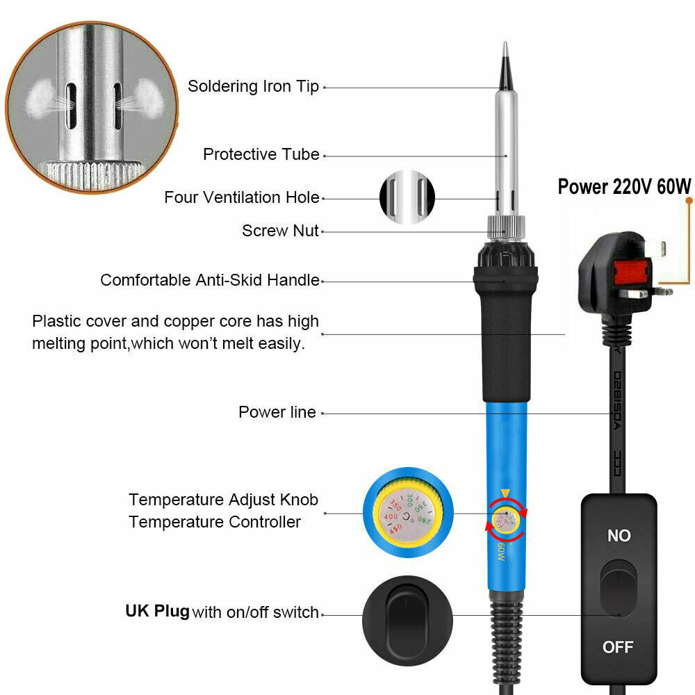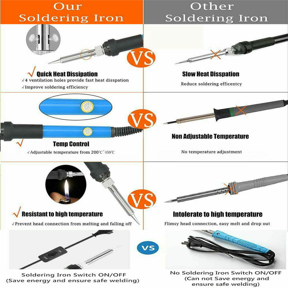Dieses professionelle Lötwerkzeug eignet sich hervorragend für bleifreie Löthilfleiter mit einstellbaren temperaturgeregelten Lötkolben: 200-450° C.
