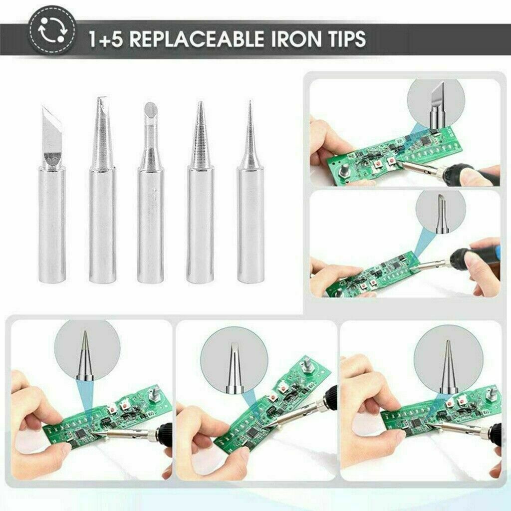 Austauschbare eisenbeschichtete Spitzen sind verfügbar, um die Lötstation hervorragend für den elektronischen und elektrischen Einsatz zu machen.