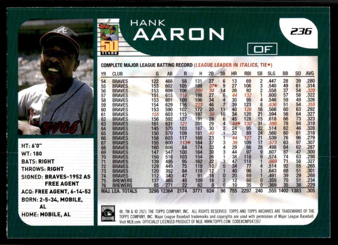 2021 Topps Archives 236 Hank Aaron