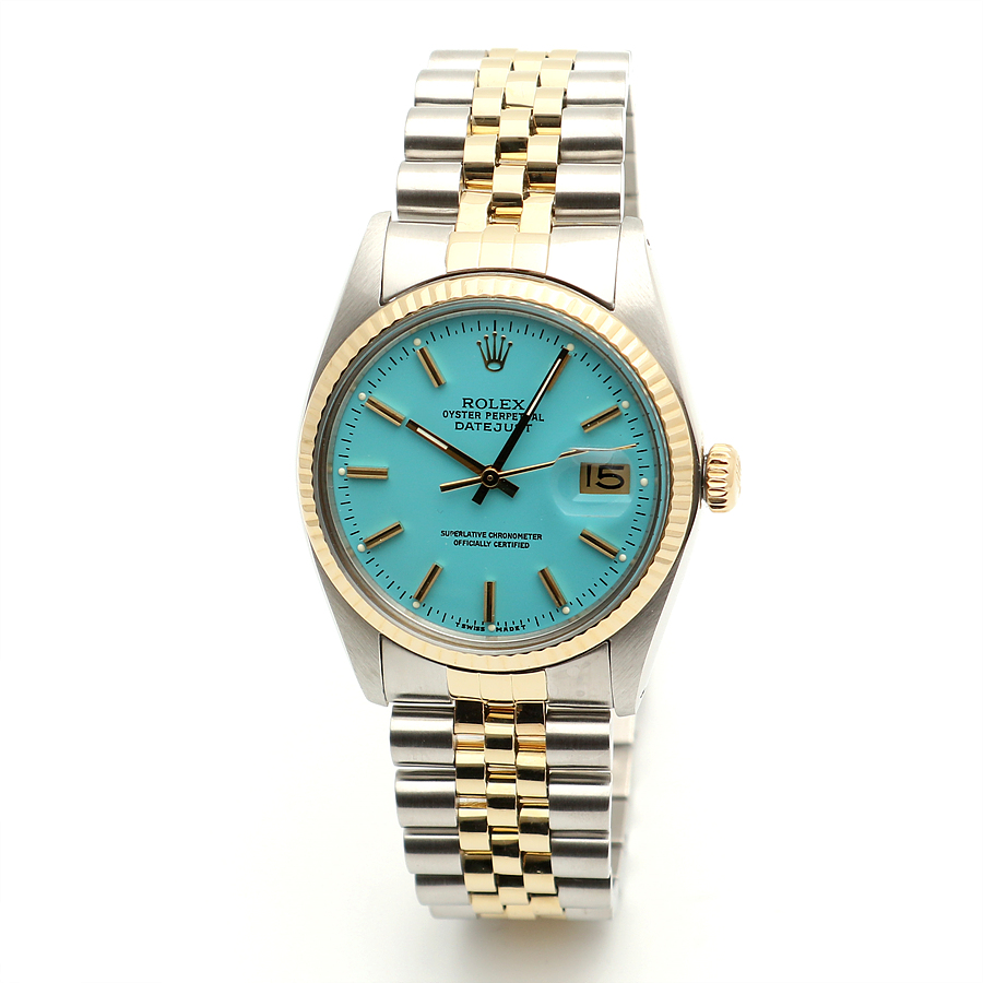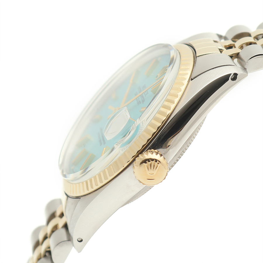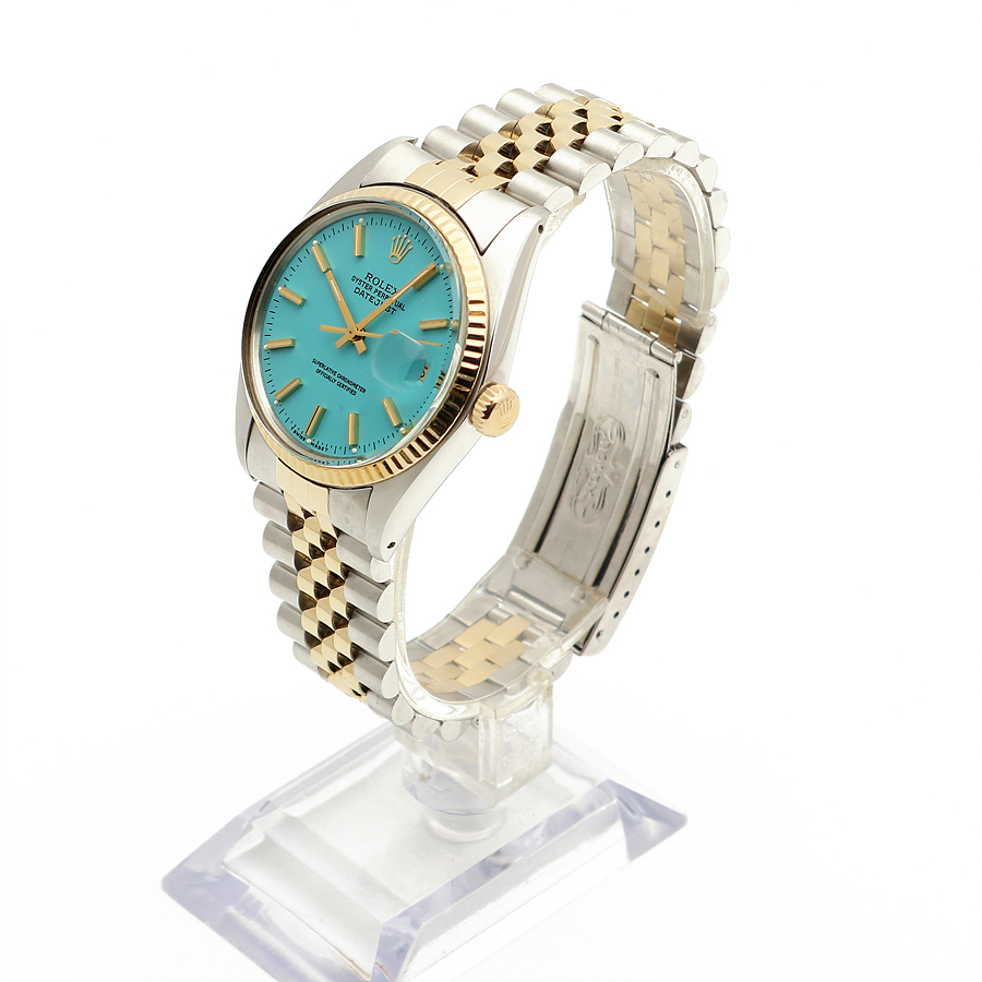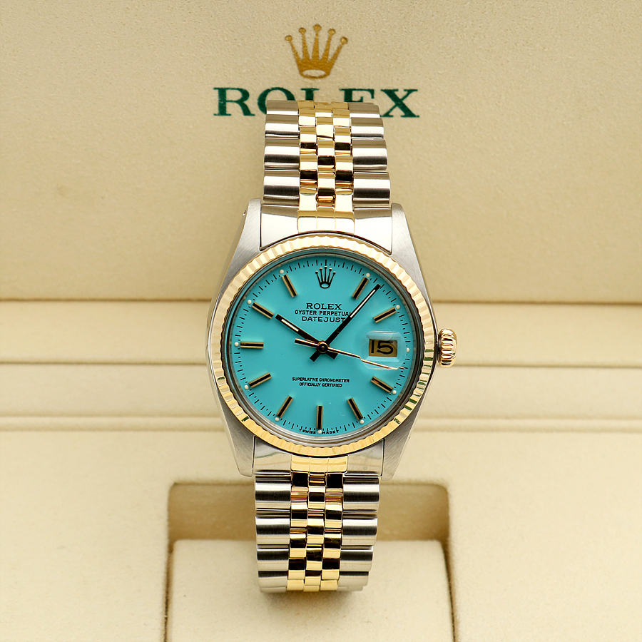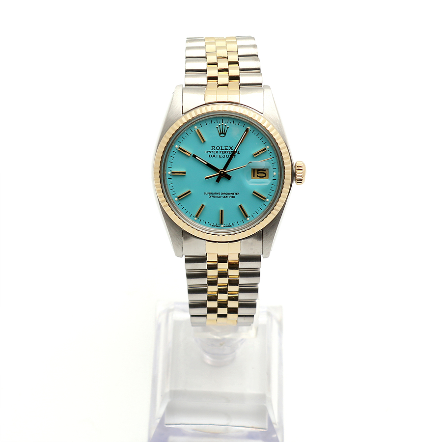 - Features a vintage Rolex Datejust model known for its classic design. - Thicker wide-boy indexes and a soft mother-of-pearl glass. - Made of 14K yellow gold, providing a light and fresh color. - The watch has been freshly refinished with a turquoise blue dial, known as Tiffany color. - Perfect gift for someone born in 1979. - Condition is excellent after professional polishing and overhaul. - Includes watch, sales shop warranty certificate, case, user manual, portable pouch, and microfiber towel. - Recommended wrist size up to 19.5 cm for a snug fit. - Model number: 16013 - Unique number: 597**** (Year of manufacture 1979) - Diameter: 36 mm, features a quick-change date window and a wide-boy index. - Automatic movement; avoid adjusting the time or date between 8 PM and 3 AM. - Gender: Men - Brand: ROLEX - Product Name: Rolex Datejust 36 Tiffany Dial 14K Mens Combi Watch 1979 153081120 - Condition: A+ - Color: turquoise blue - trenbe Code: 153081120 |