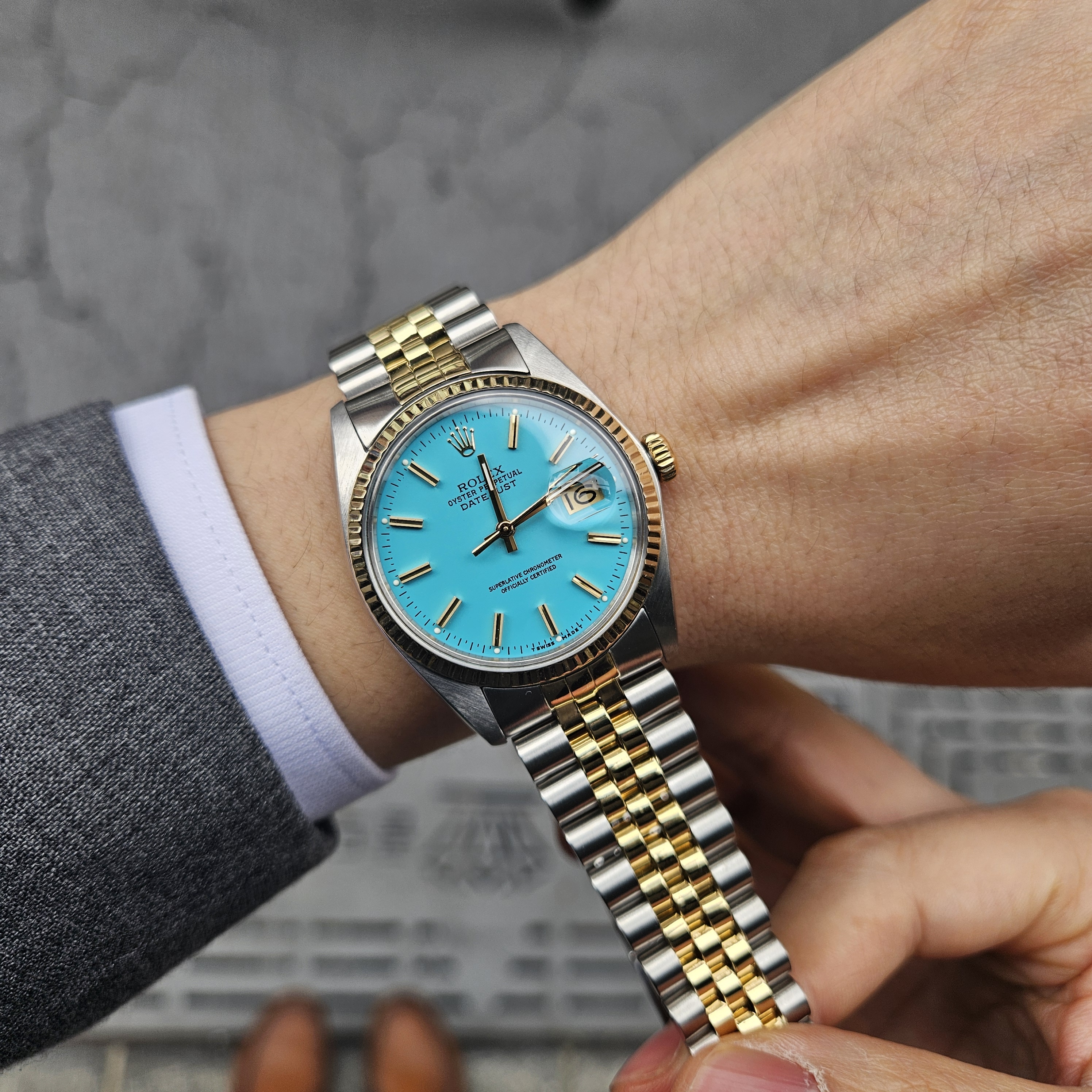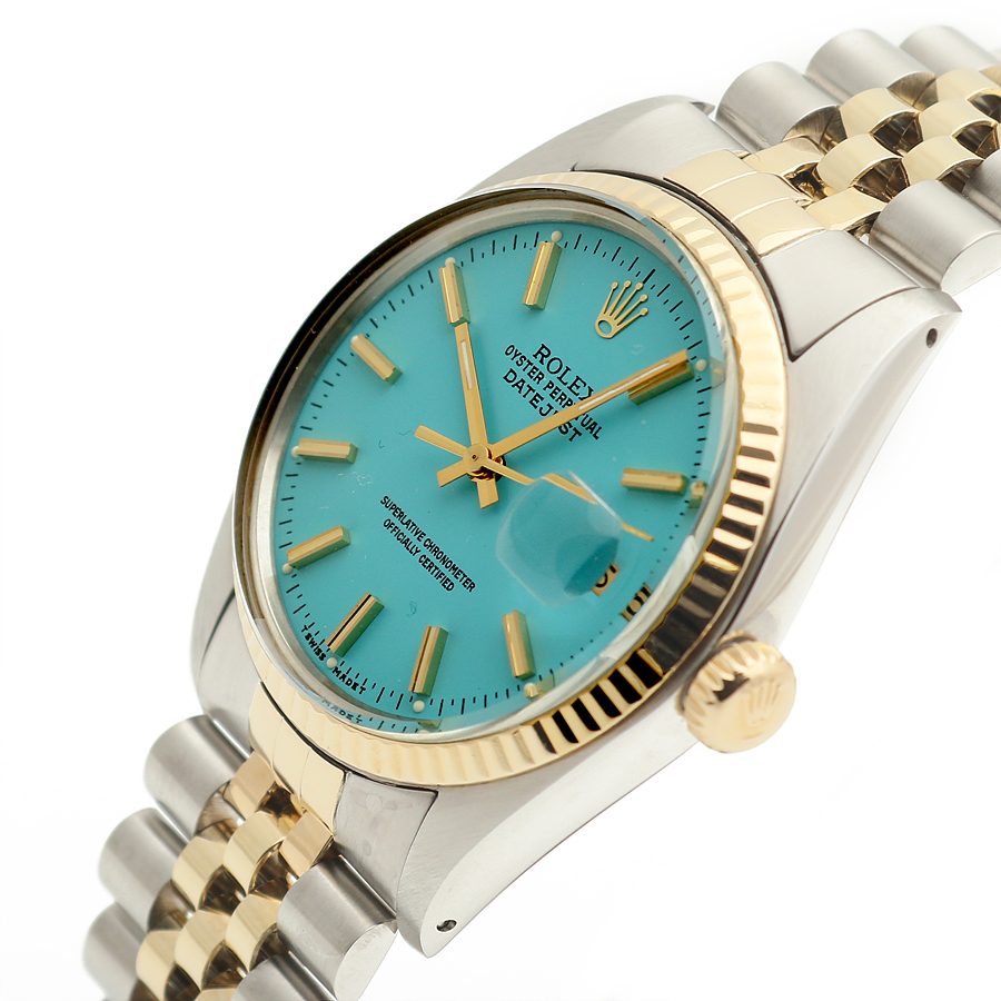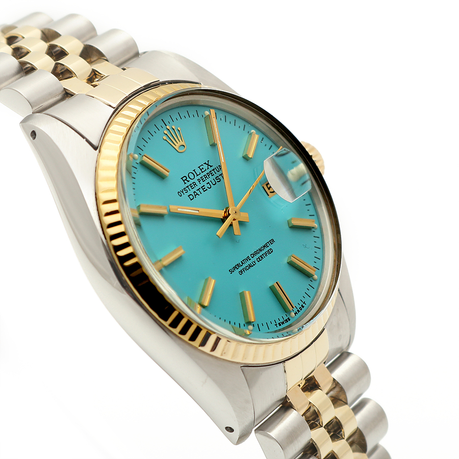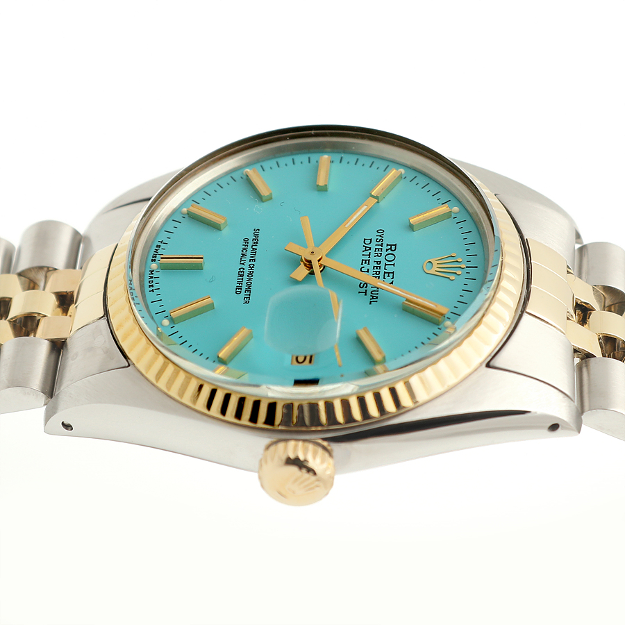 - Features a vintage Rolex Datejust model known for its classic design. - Thicker wide-boy indexes and a soft mother-of-pearl glass. - Made of 14K yellow gold, providing a light and fresh color. - The watch has been freshly refinished with a turquoise blue dial, known as Tiffany color. - Perfect gift for someone born in 1979. - Condition is excellent after professional polishing and overhaul. - Includes watch, sales shop warranty certificate, case, user manual, portable pouch, and microfiber towel. - Recommended wrist size up to 19.5 cm for a snug fit. - Model number: 16013 - Unique number: 597**** (Year of manufacture 1979) - Diameter: 36 mm, features a quick-change date window and a wide-boy index. - Automatic movement; avoid adjusting the time or date between 8 PM and 3 AM. - Gender: Men - Brand: ROLEX - Product Name: Rolex Datejust 36 Tiffany Dial 14K Mens Combi Watch 1979 153081120 - Condition: A+ - Color: turquoise blue - trenbe Code: 153081120 |