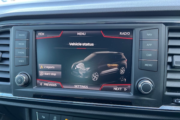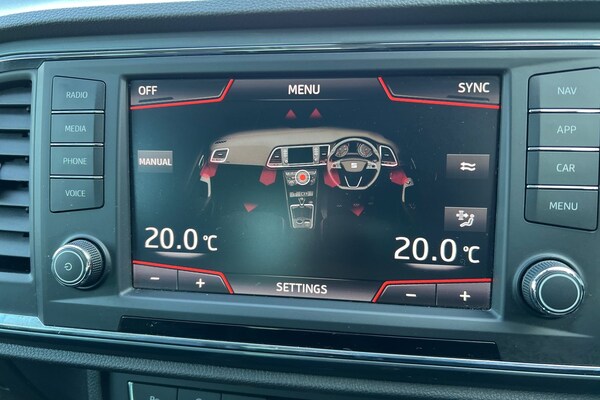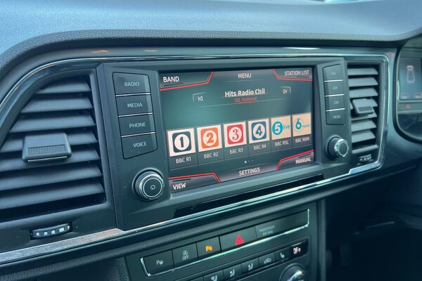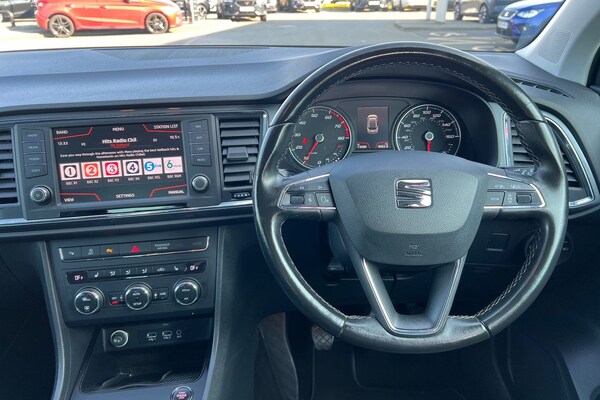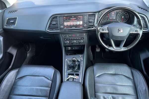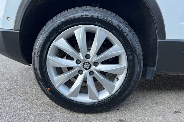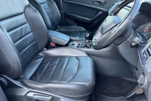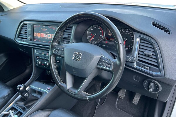 ..Dark Tinted Rear Windows, Full LED Headlights, Leather Sports Seats - Black, DAB Radio, Full LED Headlights, Dark Tinted Rear Windows, Seat Approved Sale, No Administration Fees Applicable, 12 Months Seat Approved Warranty, Complimentary 5 Day Drive Away Insurance, 145 Point Seat Approved Mechanical/Safety Check, Metallic paint, Metallic - Nevada white, Leather - Black, Dark tinted rear windows, Front and rear electric windows, Rear wash/wipe, Comfort suspension, Black wheel arch extensions, Body colour bumpers, Body colour door handles, Chrome headlight surround, Chrome roof rails, Chrome side window trim, Chromed centre radiator grille surround, Hidden exhaust pipe, Matt black radiator grille, Rear spoiler, Automatic headlights, LED daytime running lights, LED front fog lights with static cornering light function, LED Headlights, LED tail lights, Rear fog lights, Welcome lighting, ABS, Auto hold function, Automatic post collision braking, Electronic parking brake, Electronic stability control, ESP+EBA, Front assist including city emergency braking, Hill hold control, Traction control, 3.5'' driver's display, Cruise control, Driver alert system, Electric speed sensitive power steering, Park assist system with steering assist, Self parking functionality (includes front and rear parking sensors), Auto dimming rear view mirror, Body colour door mirrors, Electric folding door mirrors, Electrically adjustable and heated door mirrors, 3x3 point rear seatbelts, Driver/Front Passenger airbags, Drivers knee airbag, Front and rear seatbelt reminder, Front passenger airbag deactivation, Front side airbags, Predictive pedestrian protection, Tiredness recognition system, Twin curtain airbags, Tyre pressure monitoring system, Wireless Smartphone charger, Steering wheel mounted audio/phone controls, Remote fuel flap release, SEAT logo boot release, 'Lights On' Reminder warning buzzer, 8.0'' colour touchscreen with proximity sensor, Digital clock, Full Link Smartphone Integration with Mirror Link, Apple Car Play, Google Android Auto, Low fuel warning light, Multi function display, Outside temperature gauge, RPM counter, Satellite navigation system, Trip computer, Chrome effect dashboard facia, 3 height adjustable rear headrests, 60/40 split folding rear seat, Active head restraints, Driver/passenger lumbar adjustment, Front seat back storage pockets, Height adjustable driver's seat, Height adjustable front headrests, Height adjustable passenger seat, Isofix child seat